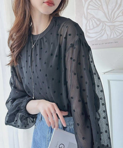 ふんわり可愛いが魅力!前後2wayフロッキードットプリント楊柳シアー素材ブラウス(長袖) ce1240080