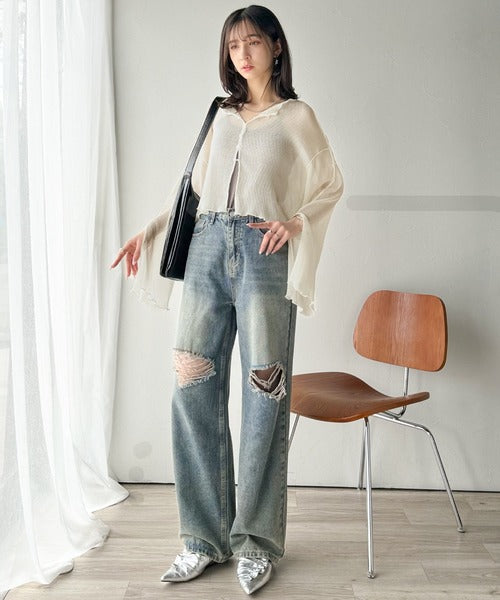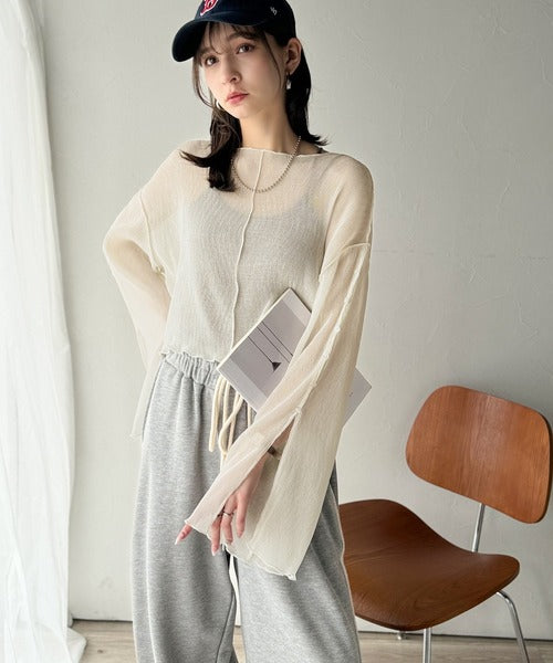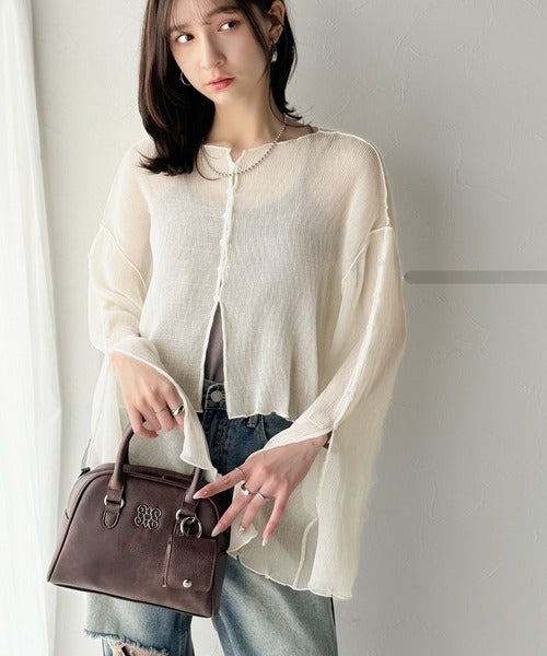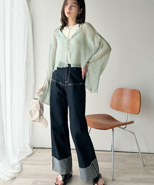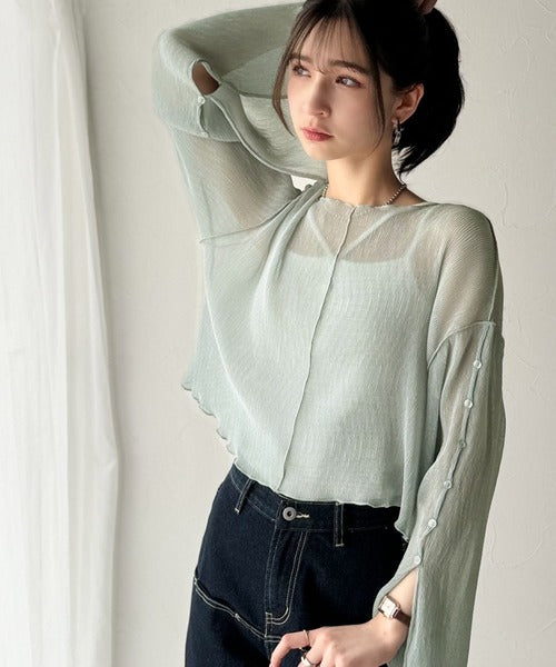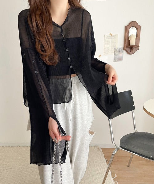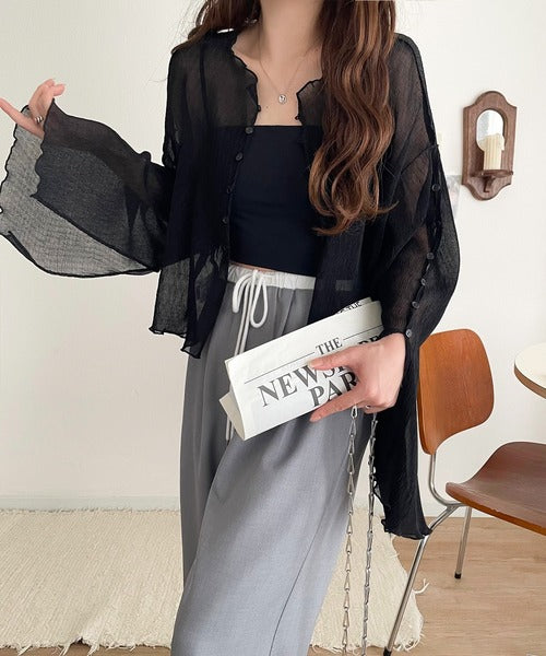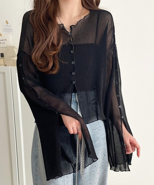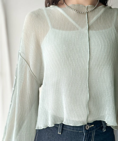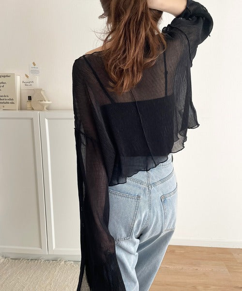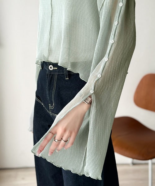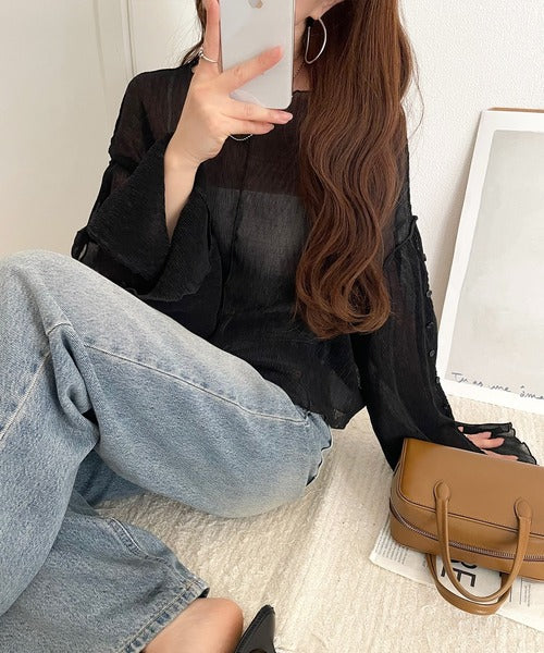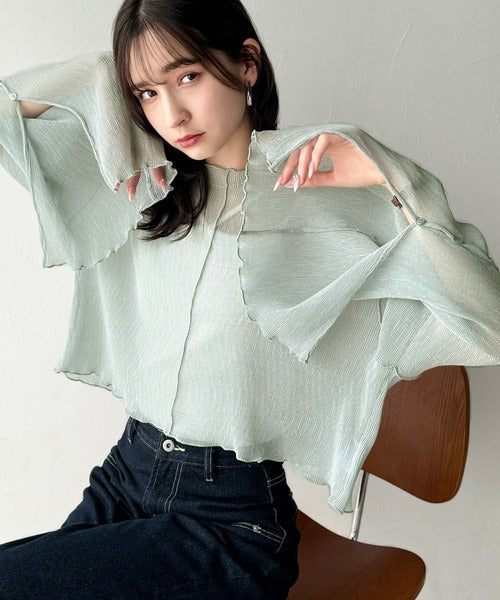 大人の上品な透け感を纏う。前後2wayシアー楊柳素材フレアスリーブブラウスカーディガン(長袖) ce1240083