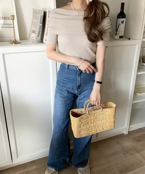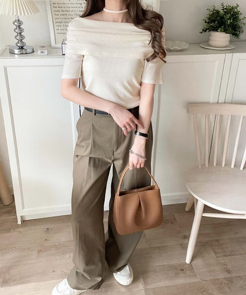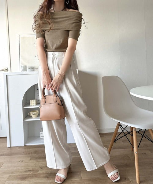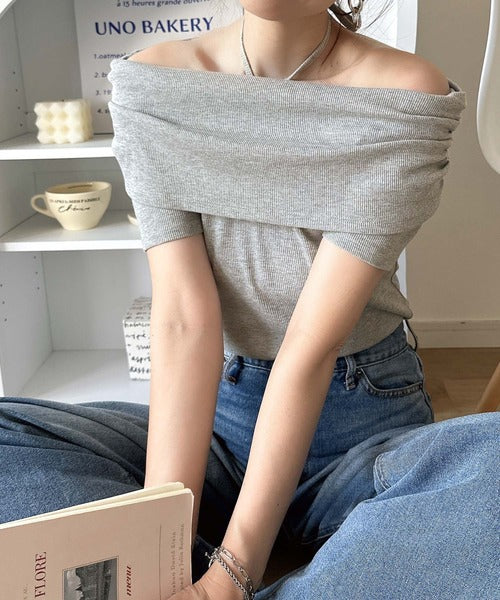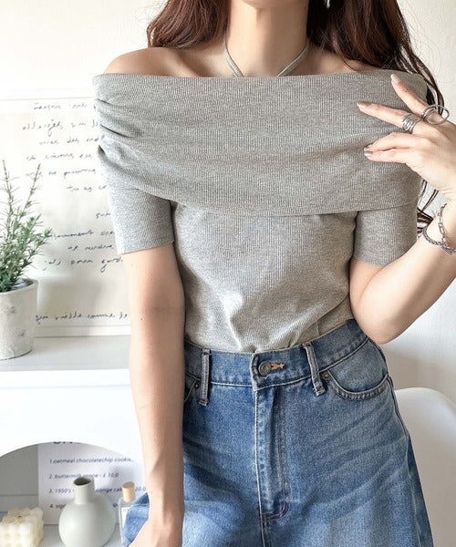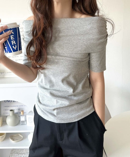 ヘルシーな肌見せが叶うオフショルデザインで、シンプルながらもエレガントな印象に仕上がります。