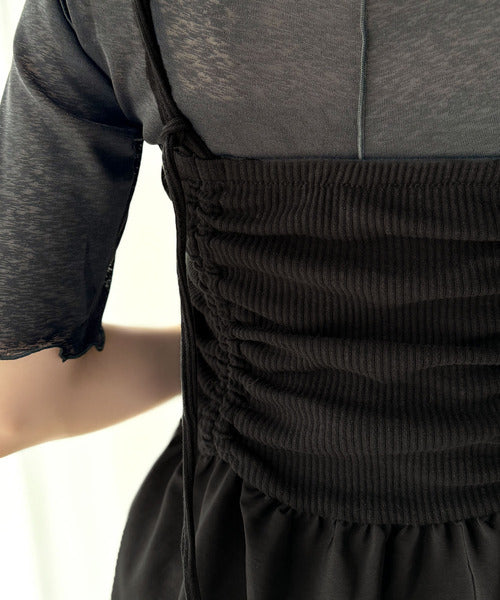 薄手のトップスと合わせたレイヤードスタイルでも、
