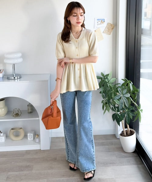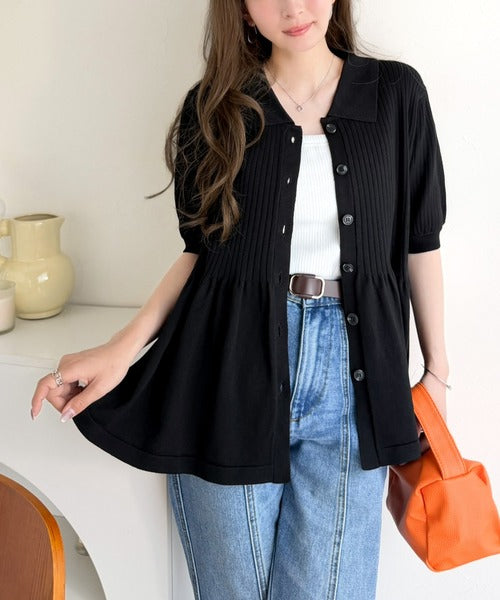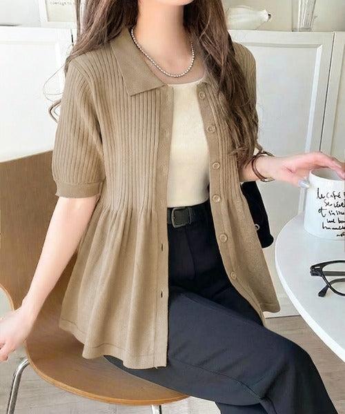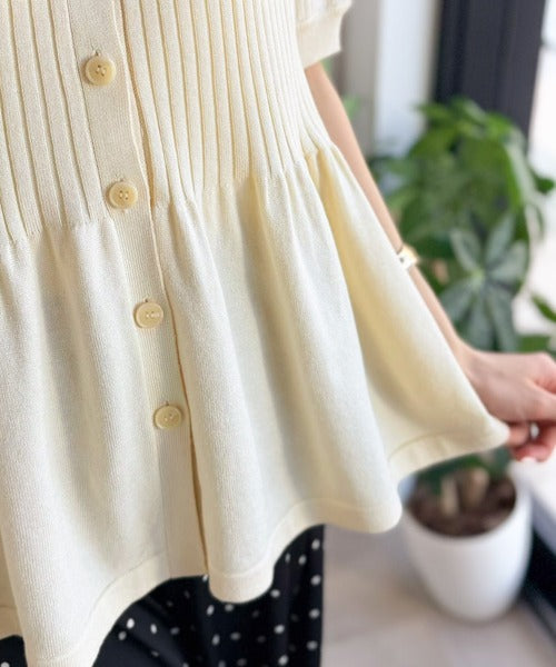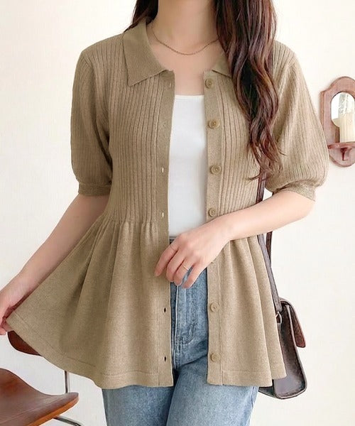 シンプルながらも女性らしいデザインのペプラムカーディガン♪