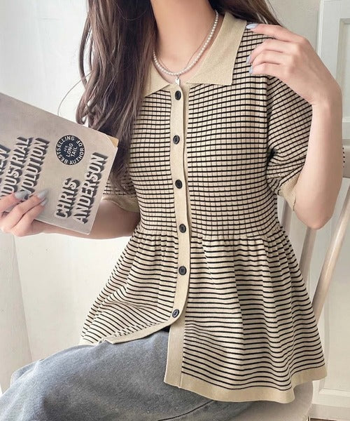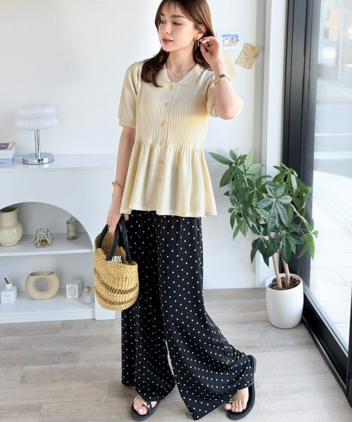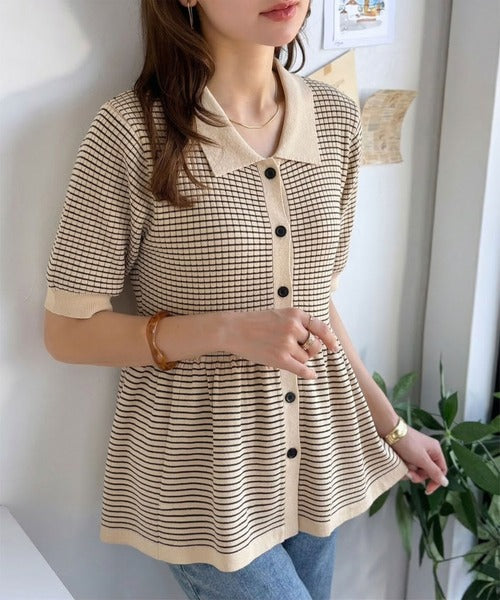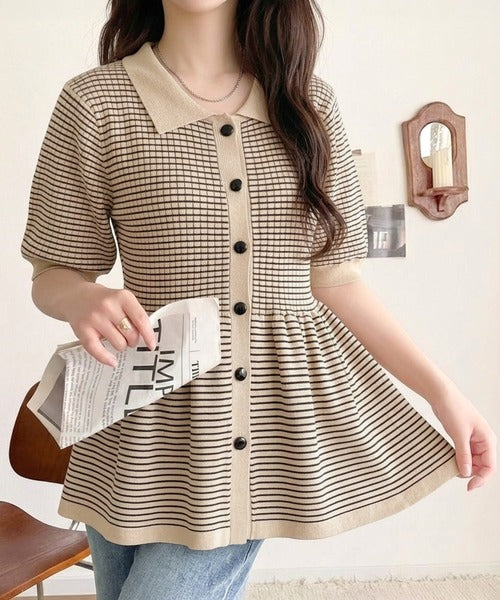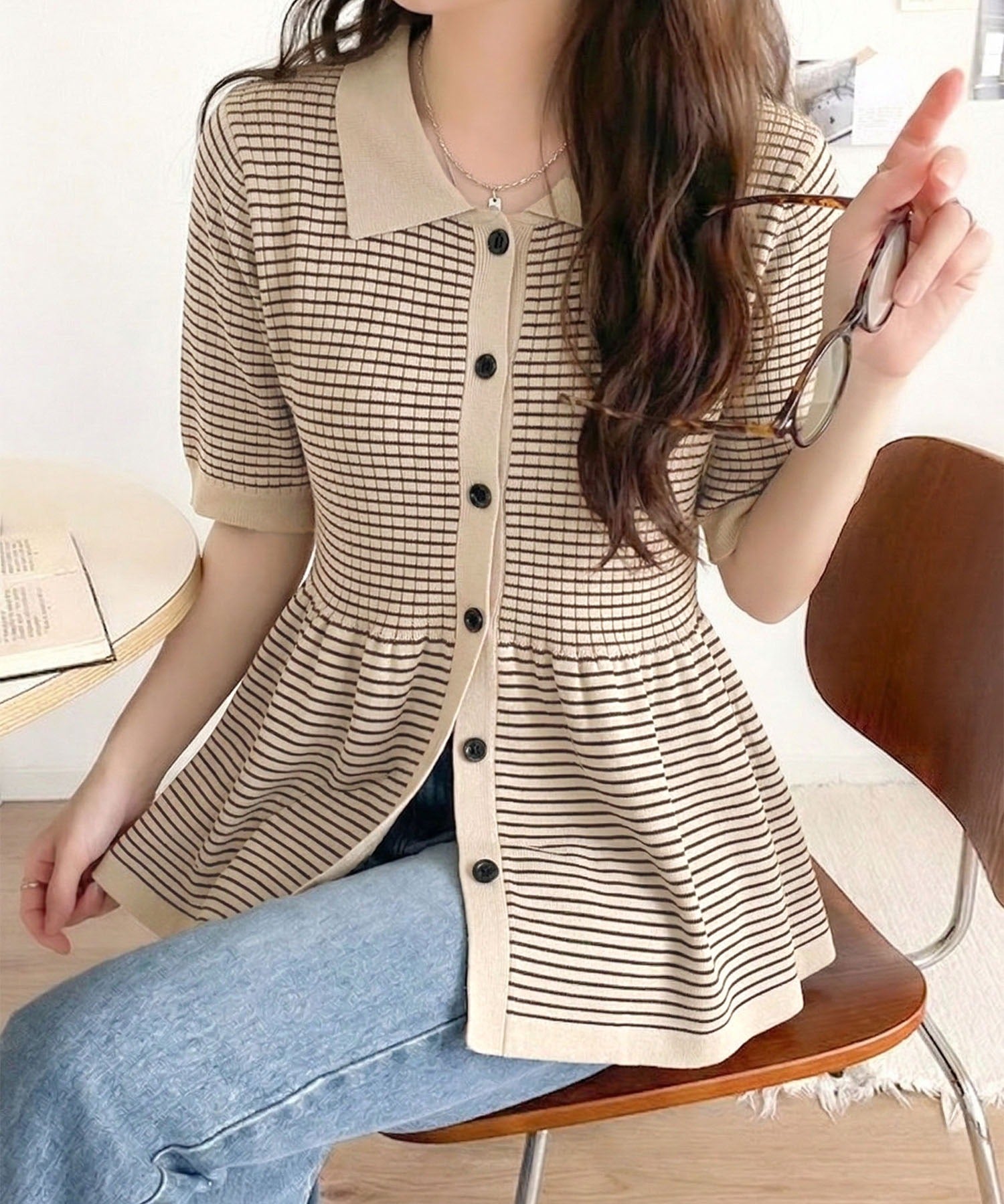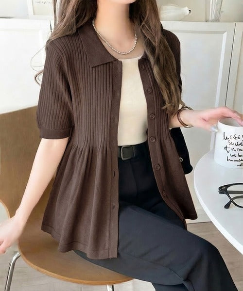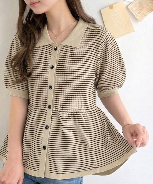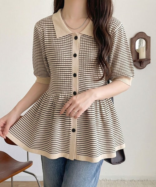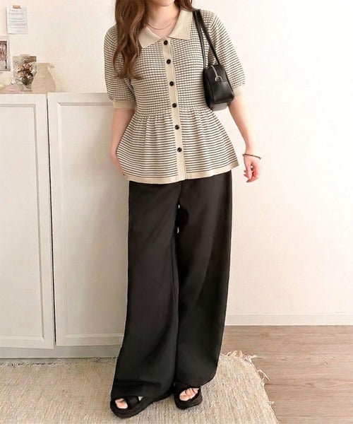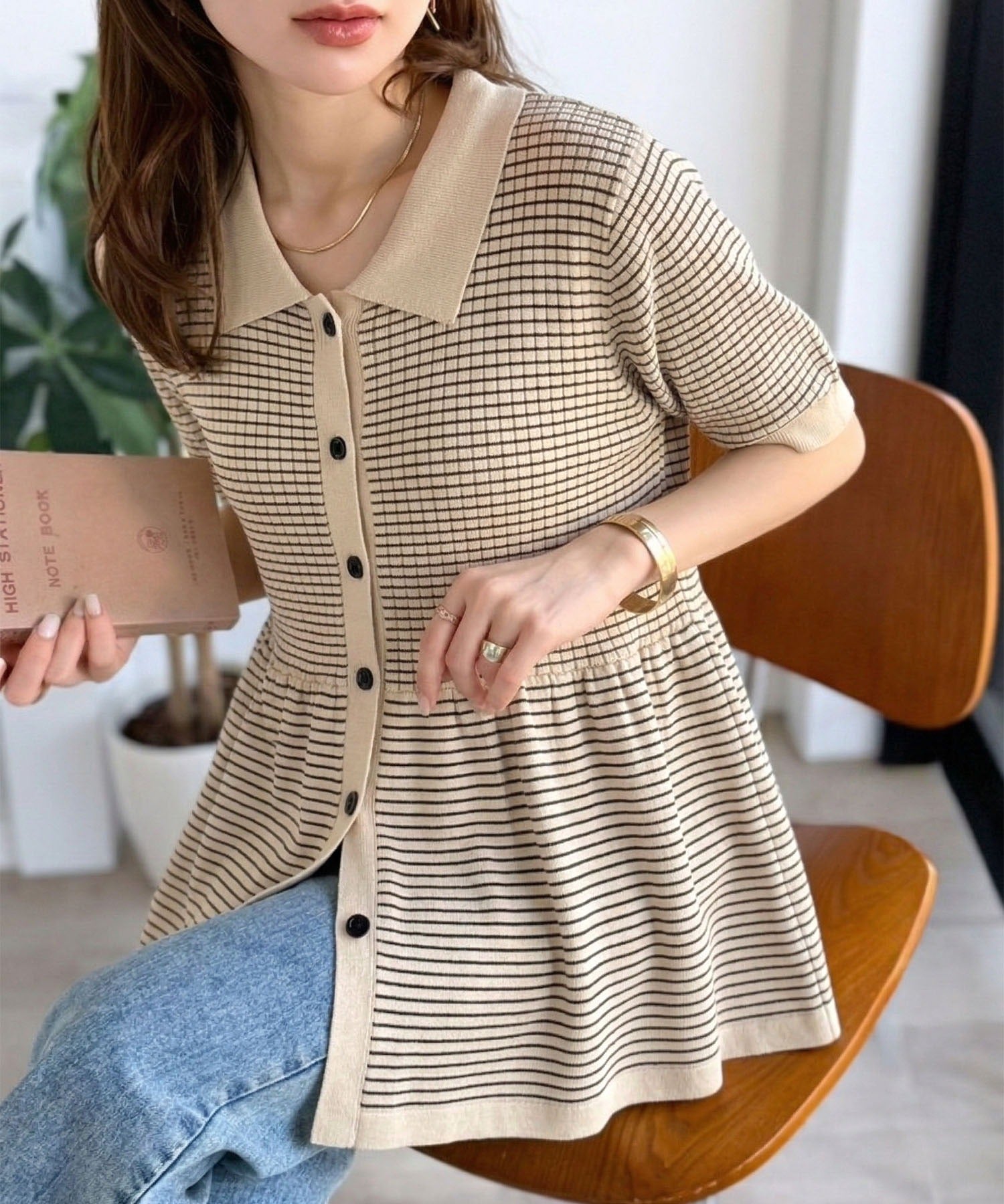 ポロ襟デザインが上品な雰囲気を演出する、きれいめペプラムトップス。