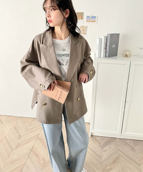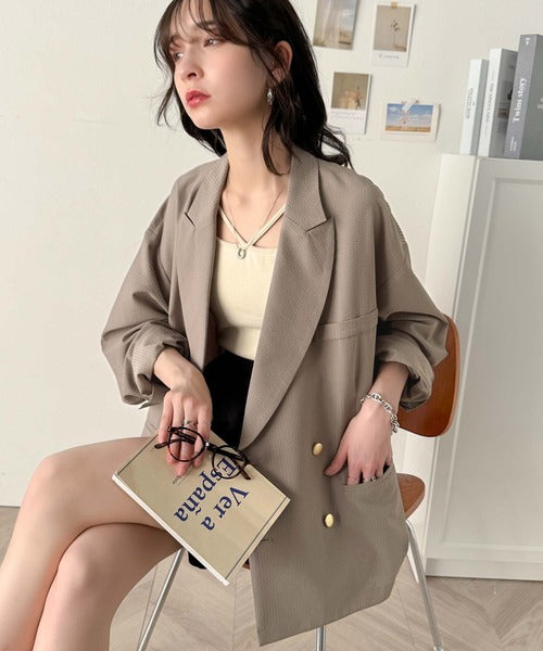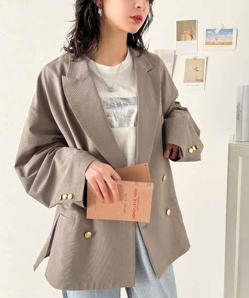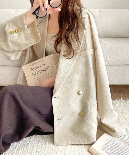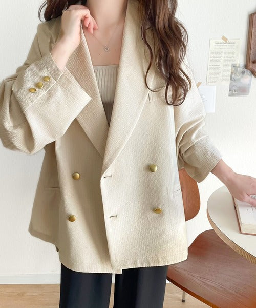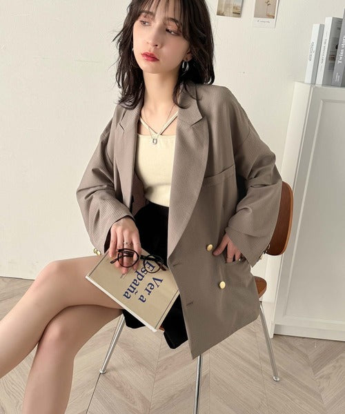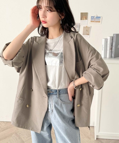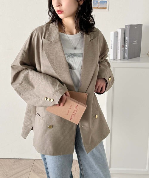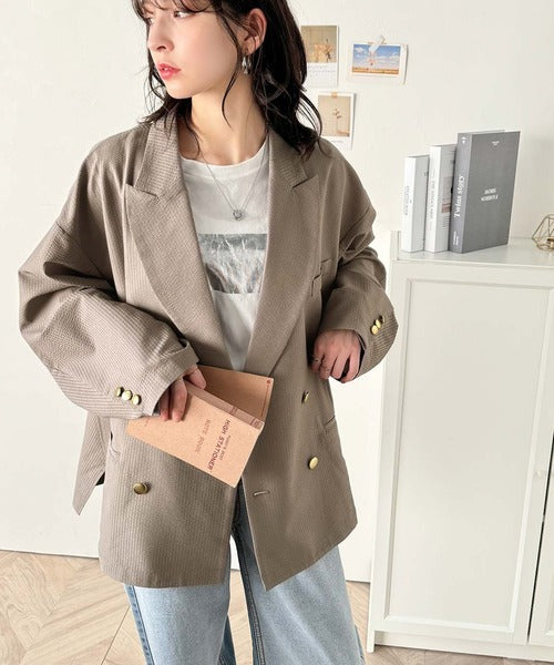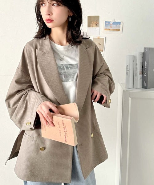 トレンドのオーバーサイズシルエット♪サッカー素材長袖ビッグジャケット(ダブル) ce1260302