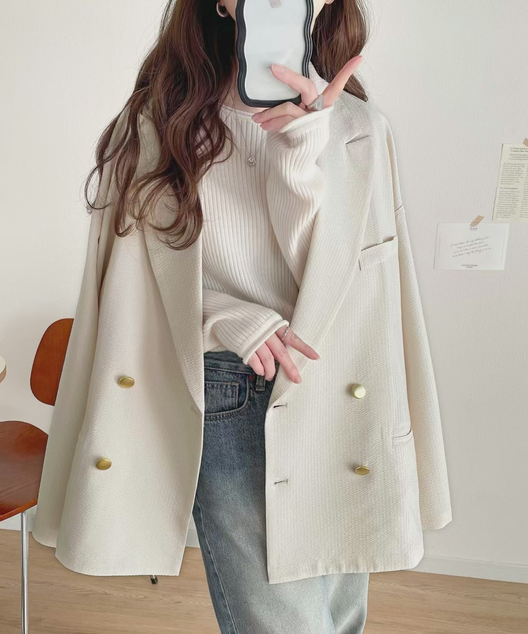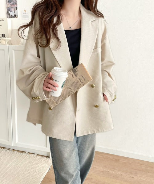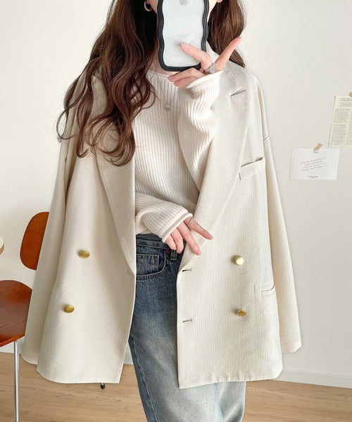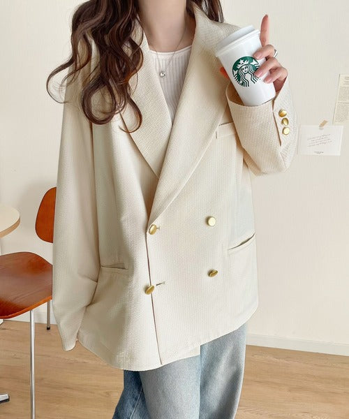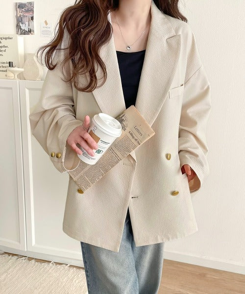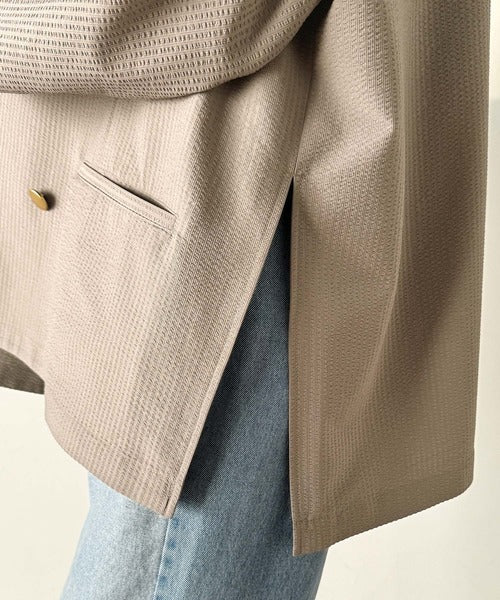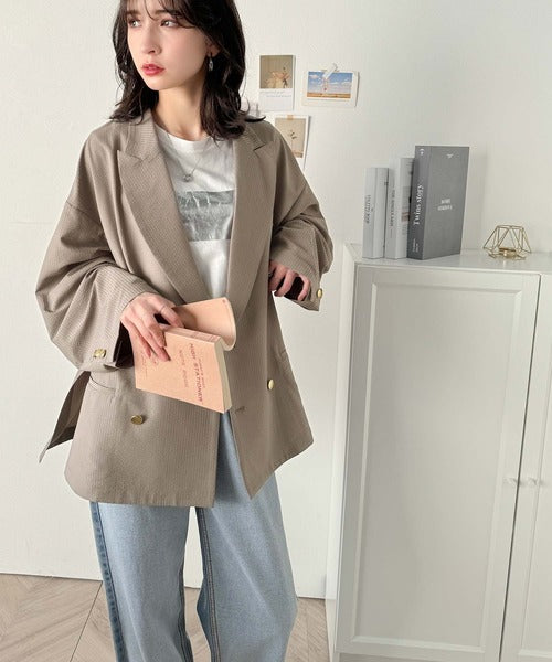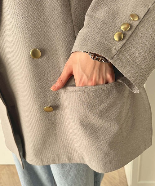 トレンドのオーバーサイズシルエット♪サッカー素材長袖ビッグジャケット(ダブル) ce1260302