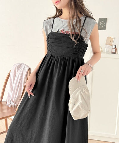360度大人可愛い♪フロントギャザーバックリボンデザインキャミワンピース(Aライン) ce1260320