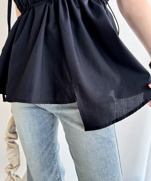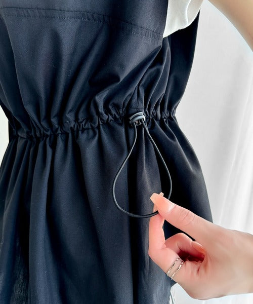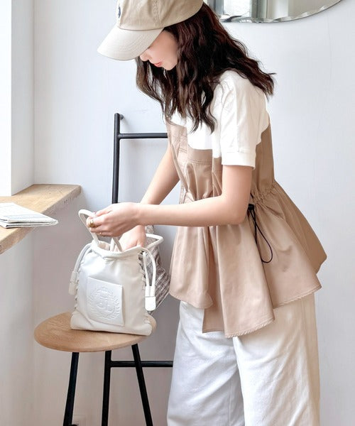 前面にはドローストリングが施されており、ウエストラインを自由に調節して、より女性らしいシルエットに♪