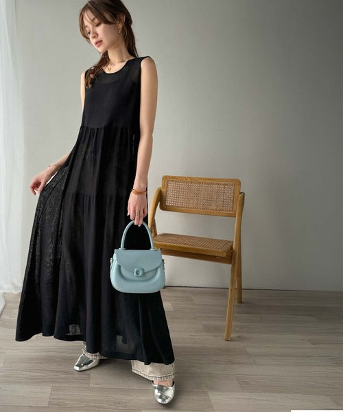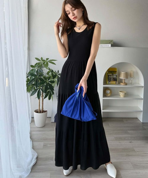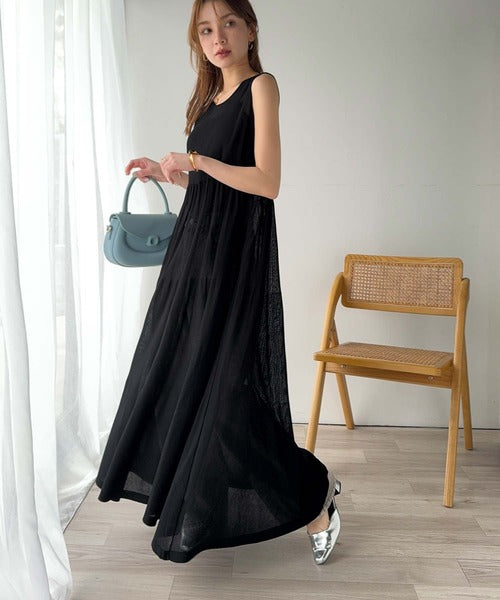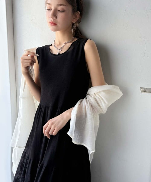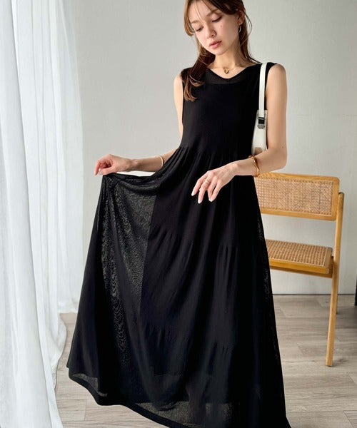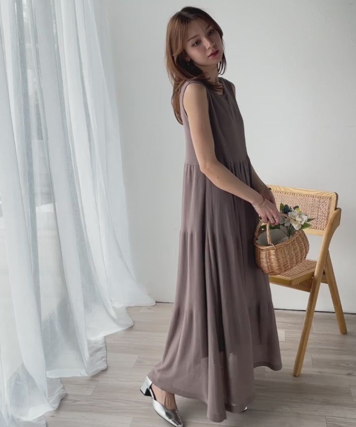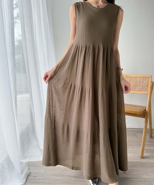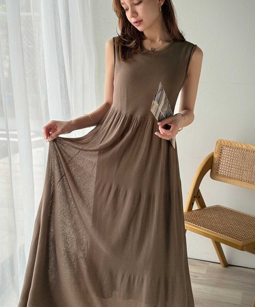 ふんわり透け感で大人フェミニン。前後2WAY3段シアーティアードニットワンピース ce1260332