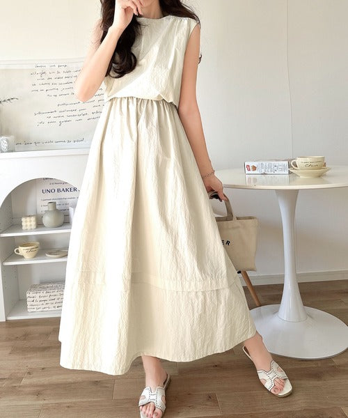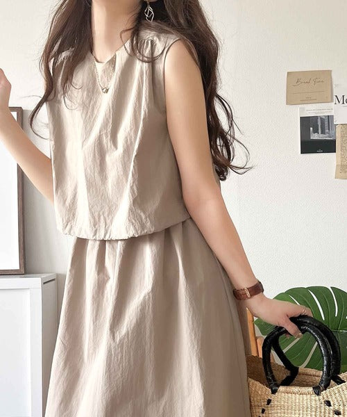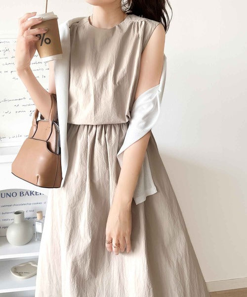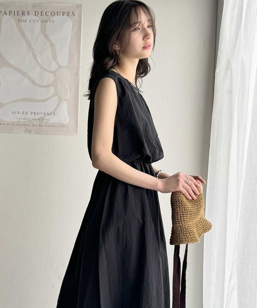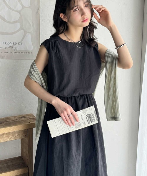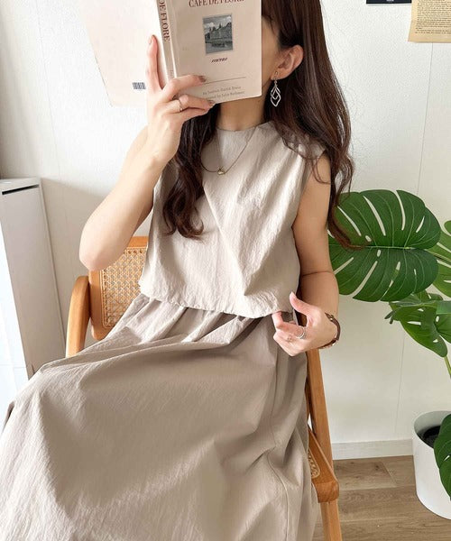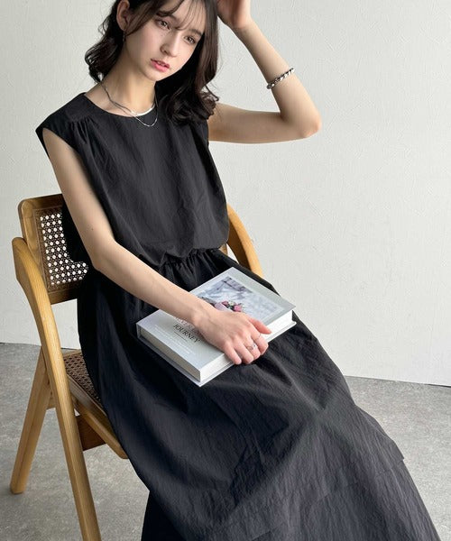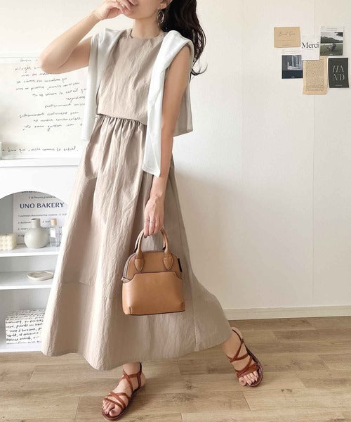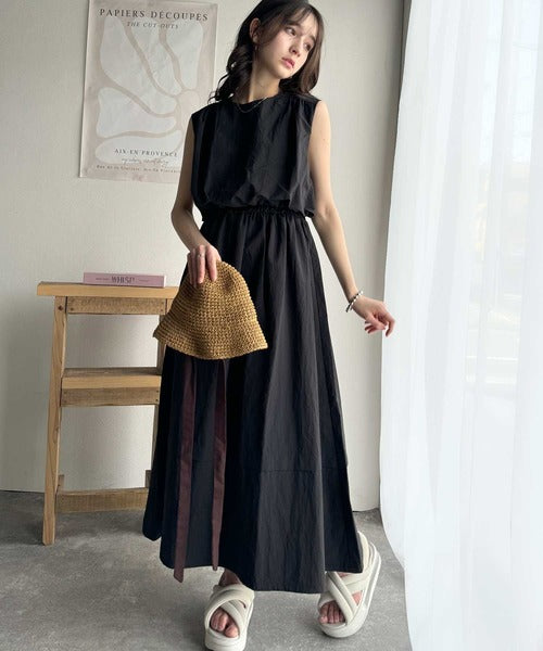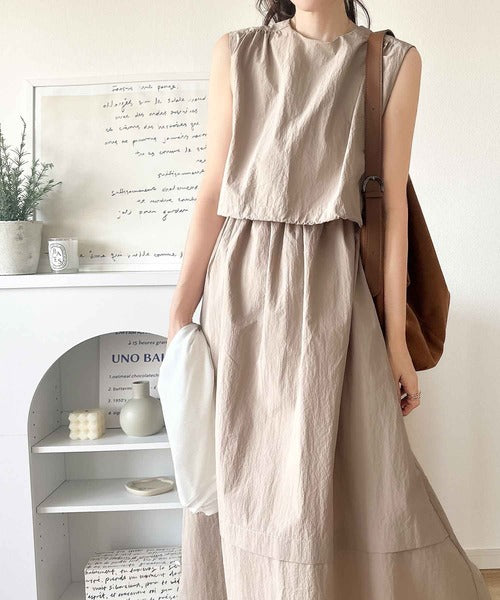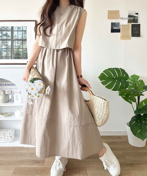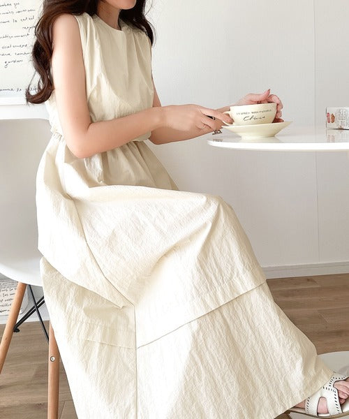 1枚で即お洒落見え。セットアップ風Aラインノースリーブロングワンピース ce1260341