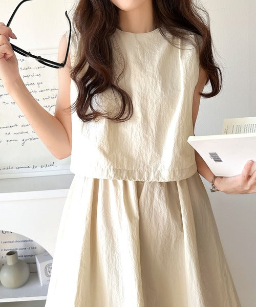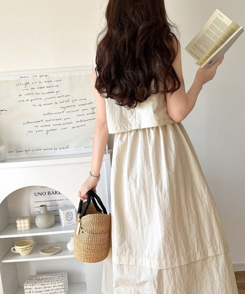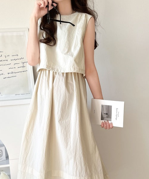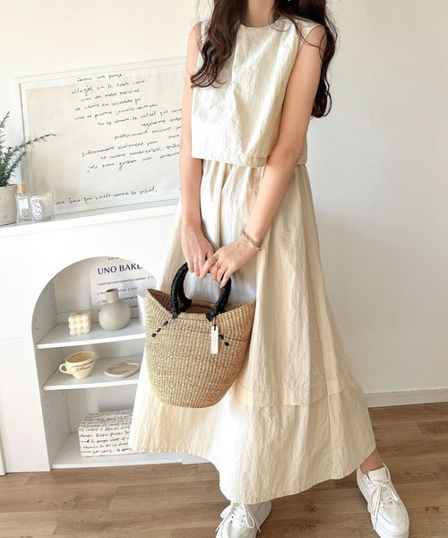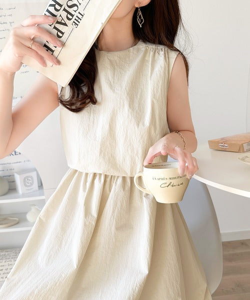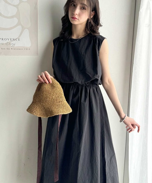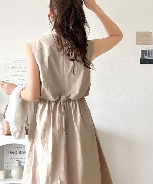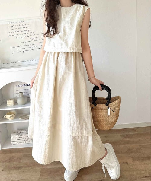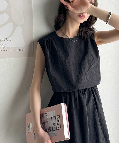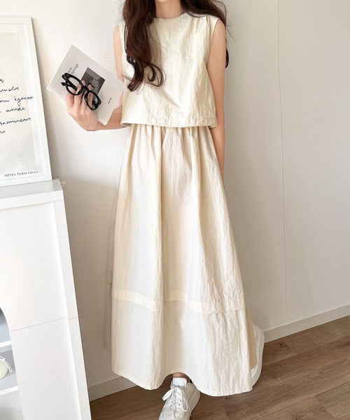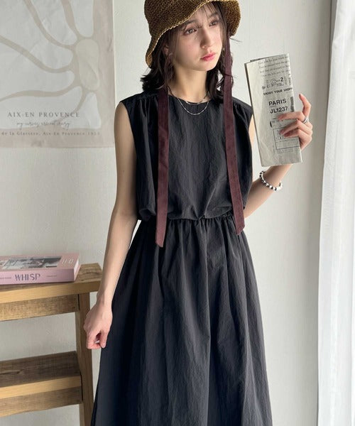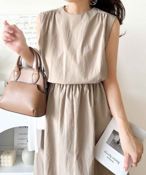 1枚で即お洒落見え。セットアップ風Aラインノースリーブロングワンピース ce1260341