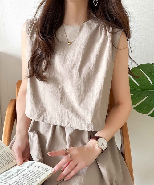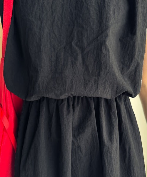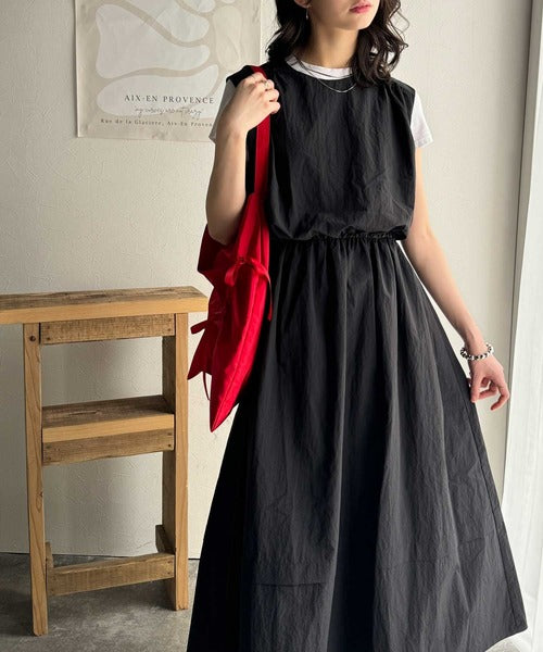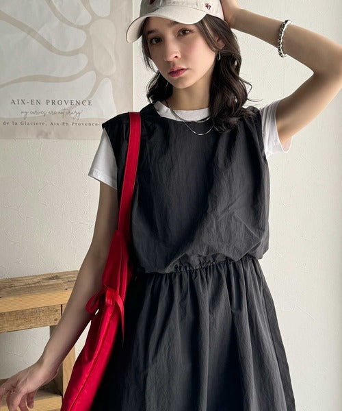 こなれ感たっぷりのセットアップ風ナイロンワンピ