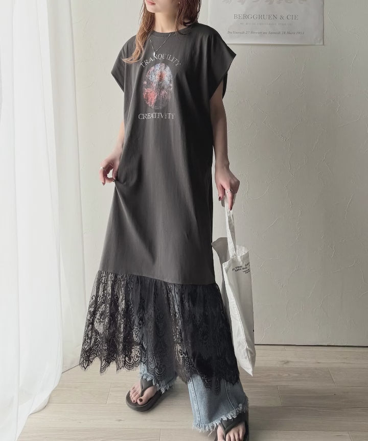 レイヤード風で魅せる大人のこなれ感。レースコンビロックTワンピース(半袖) ce1260363
