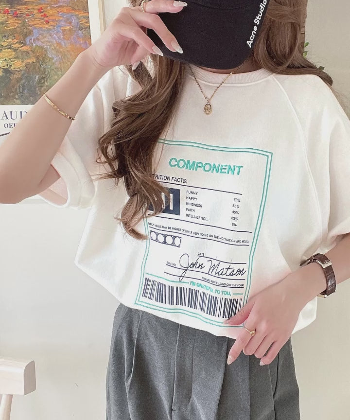 大人カジュアルの新定番。前後2wayグラフィック刺繍&プリント裏毛スウェットトップス(半袖) ce1260367