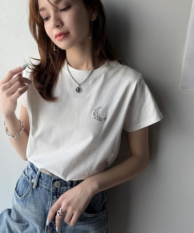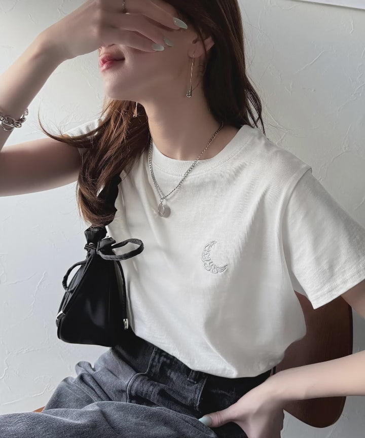 胸元の刺繡は、ラメ糸を使用しキラっと光るトレンド感のあるデザイン。