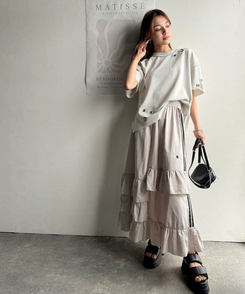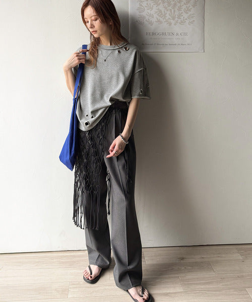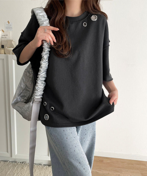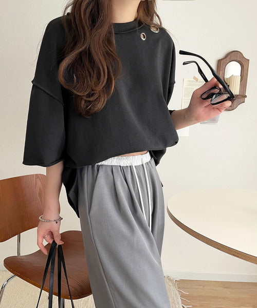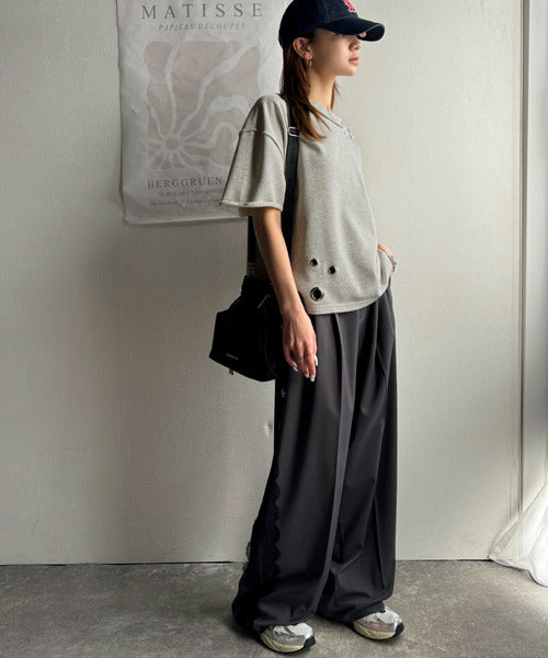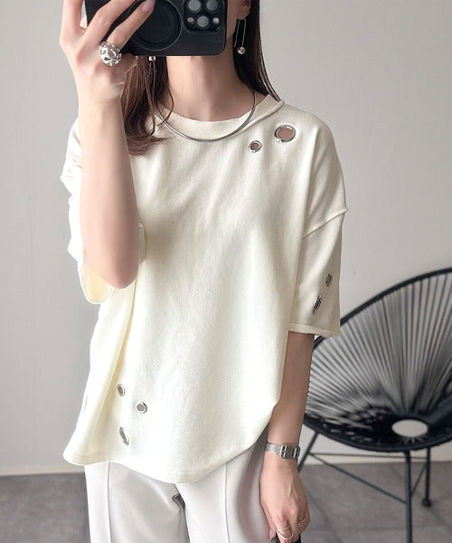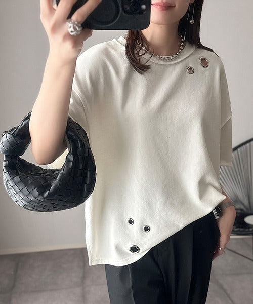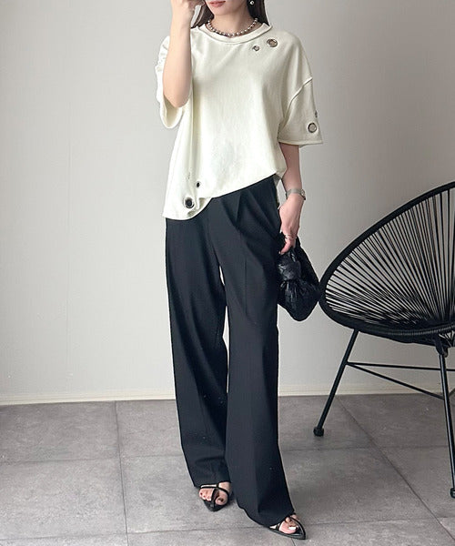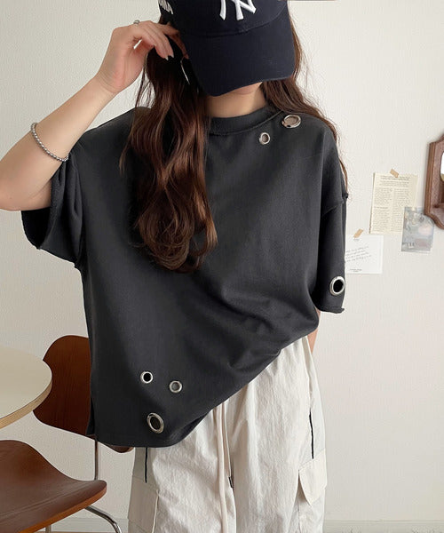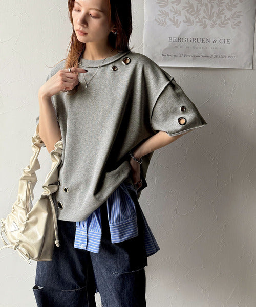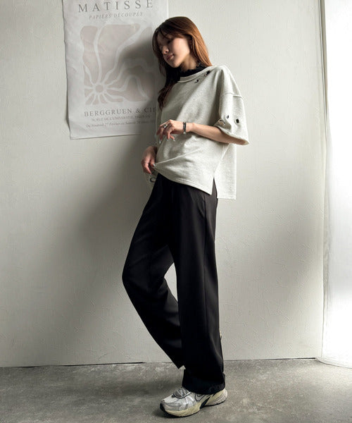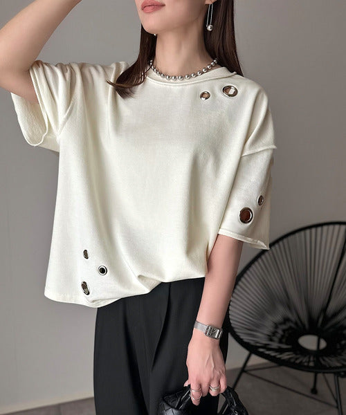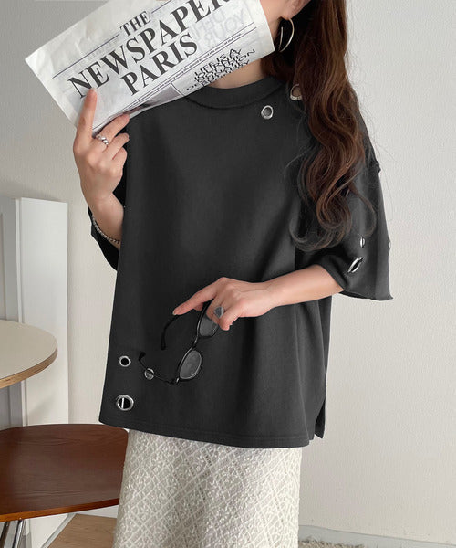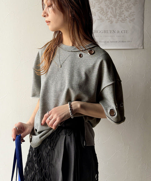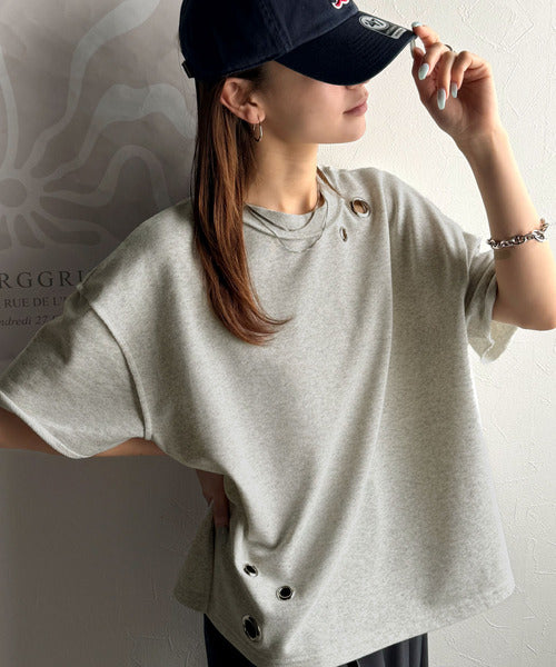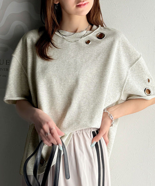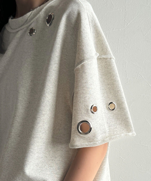 エッジの効いたデザイン☆リングハトメ裏毛半袖スウェット ce1260408