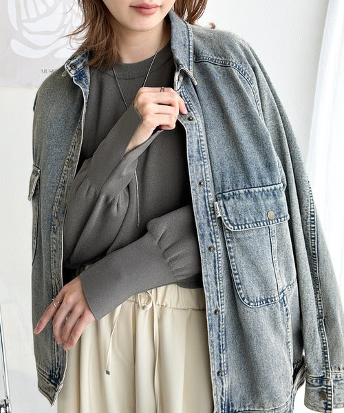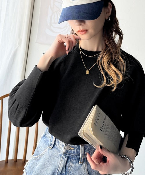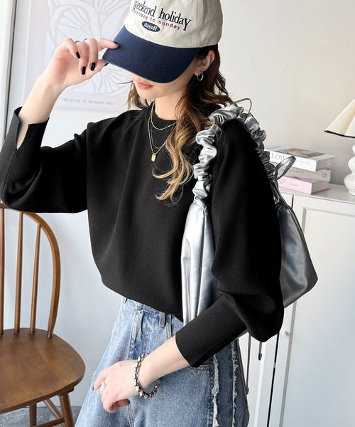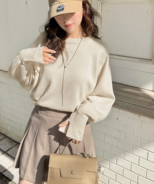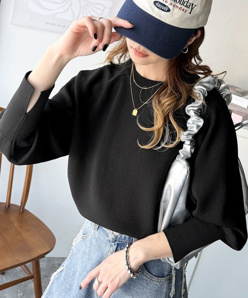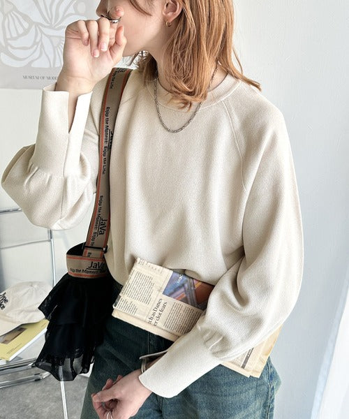 「袖パフラグランコンパクトスウェットライクニット♪」