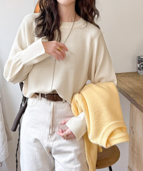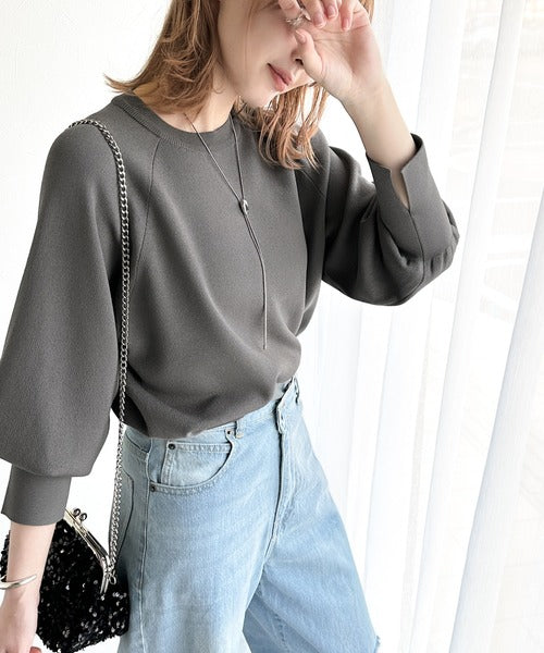 ふんわり袖が女性らしい、毎日着たくなる上質ニット!