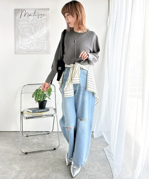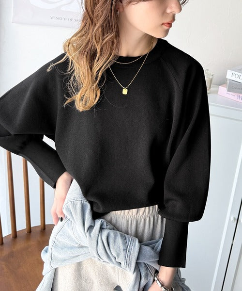大人上質ベーシック。袖パフ ラグランコンパクト スウェットライクニット(長袖) ce1260414