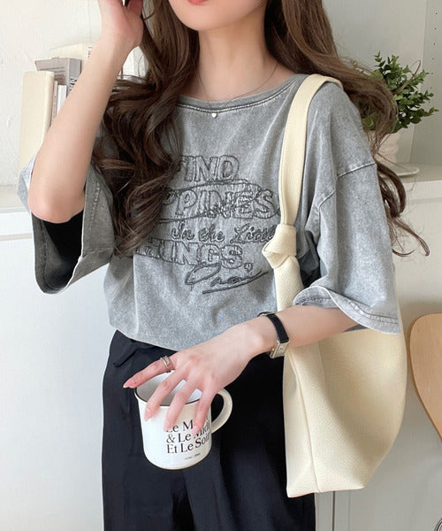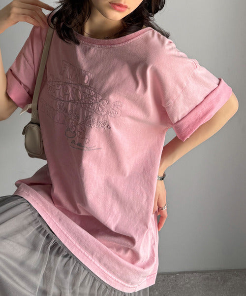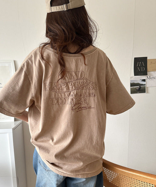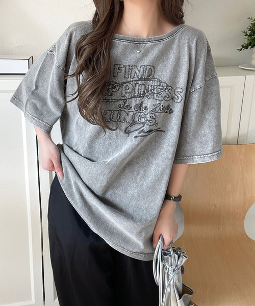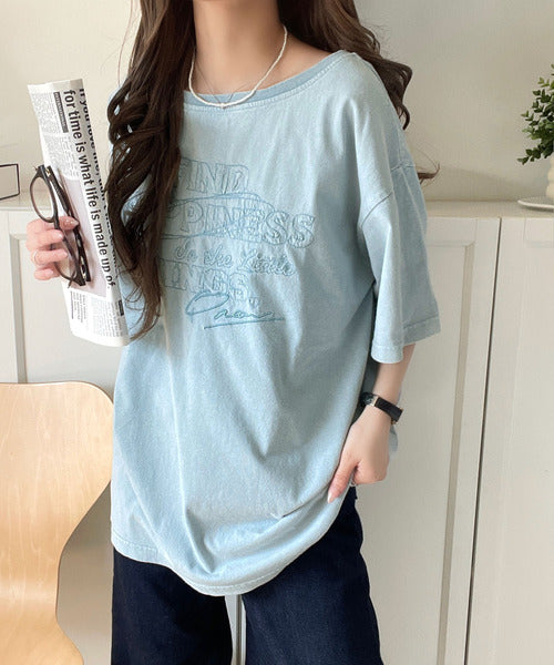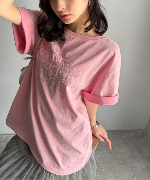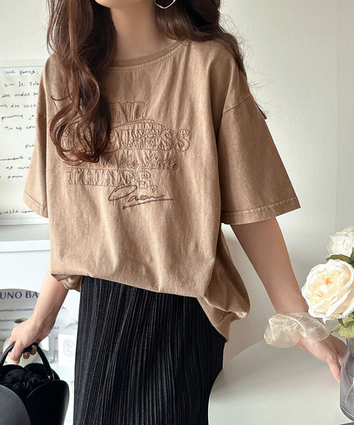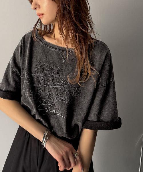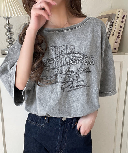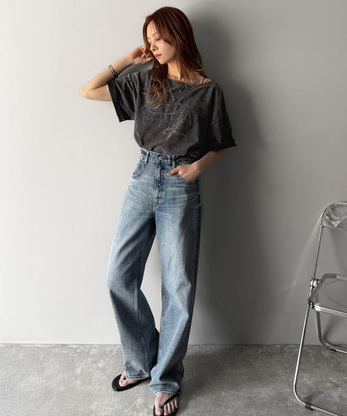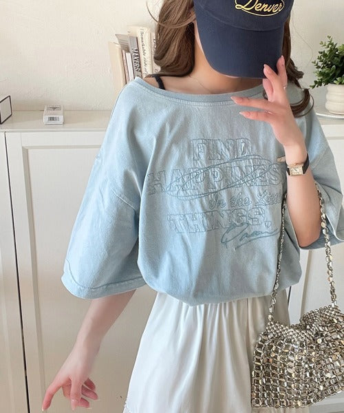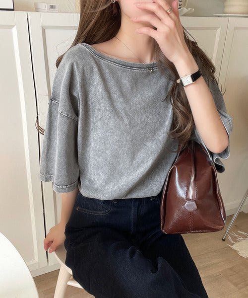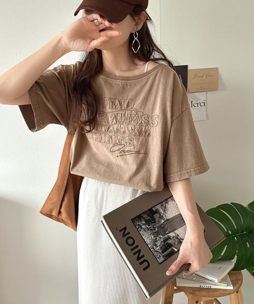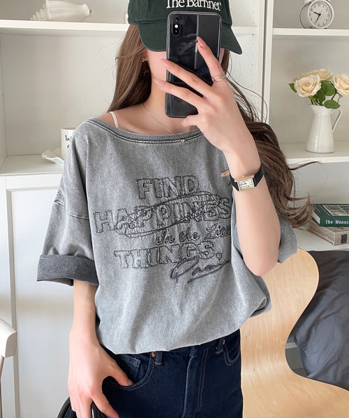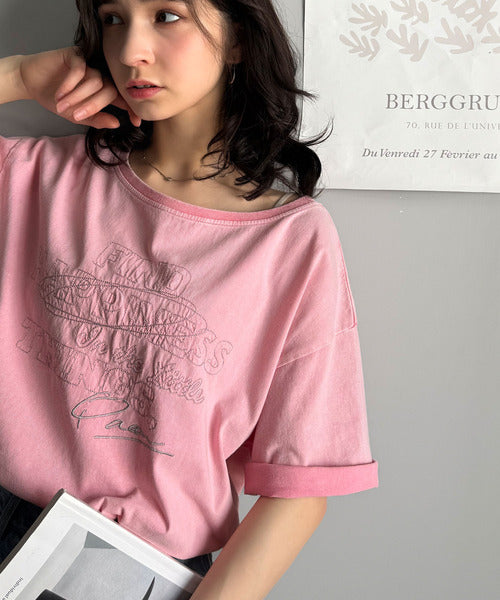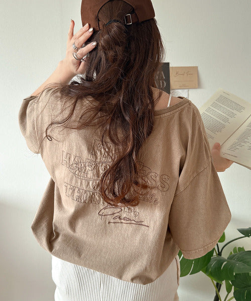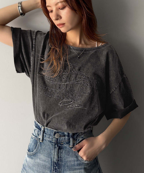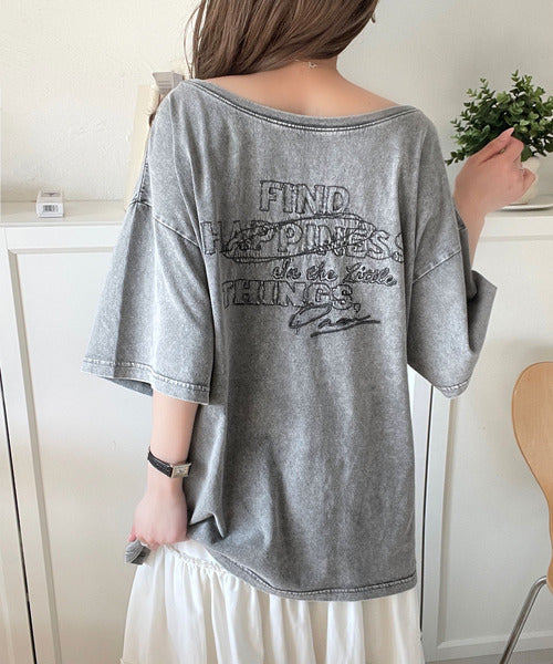 綿100%メンズライクヴィンテージウォッシュ☆前後2way刺繍ワイドネックTシャツ ce1260421