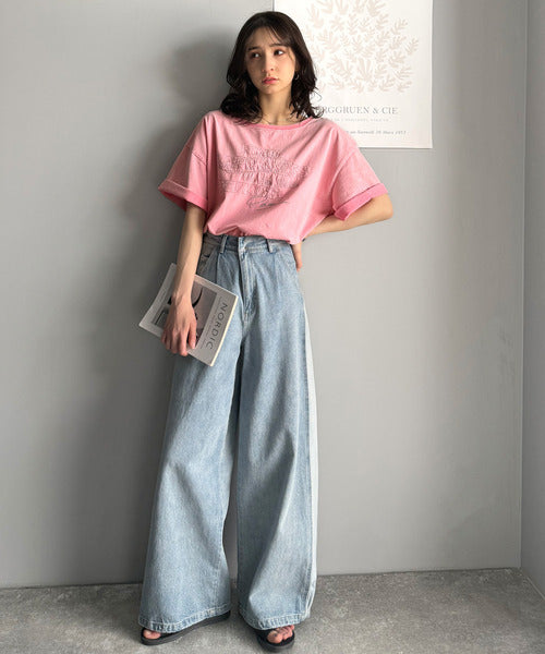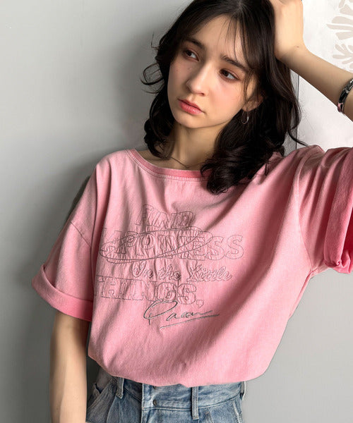 贅沢な刺繍が施された、前後2WAYで着回し自由な半袖Tシャツです。