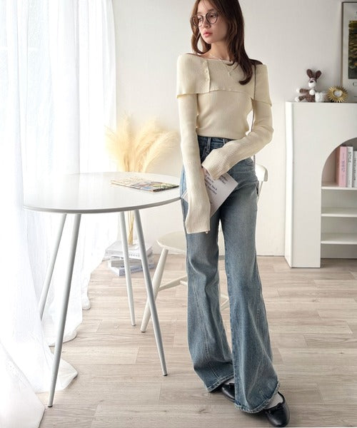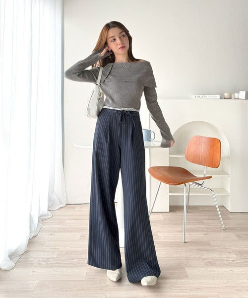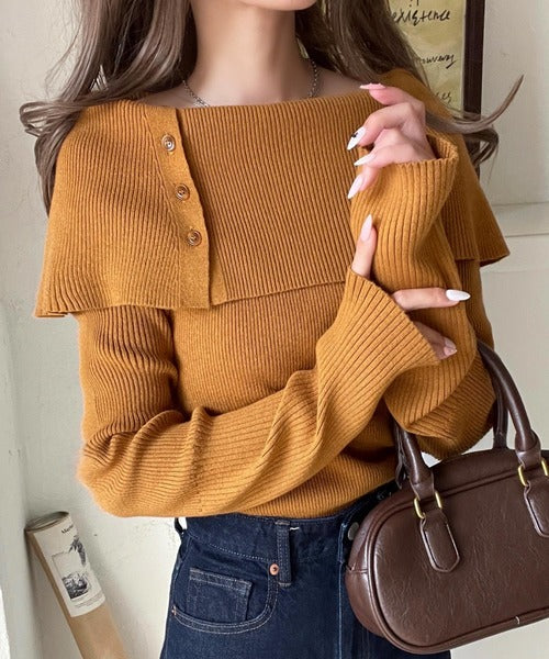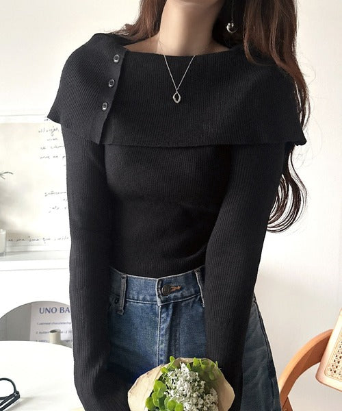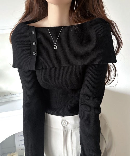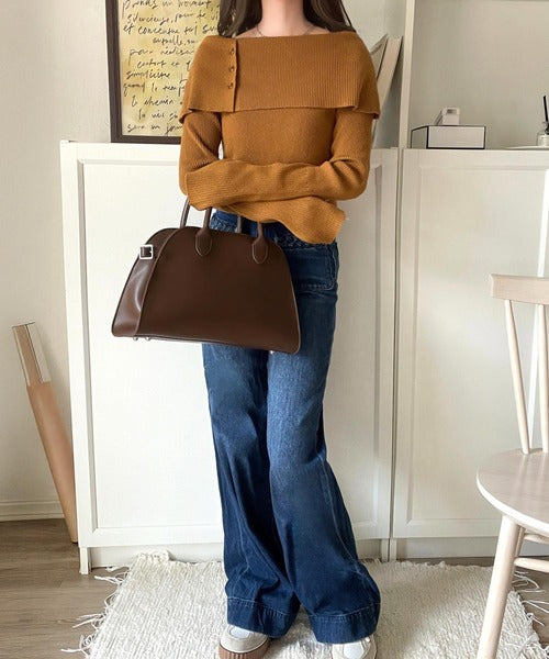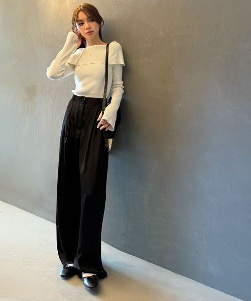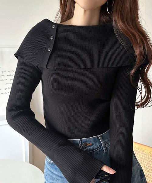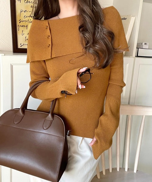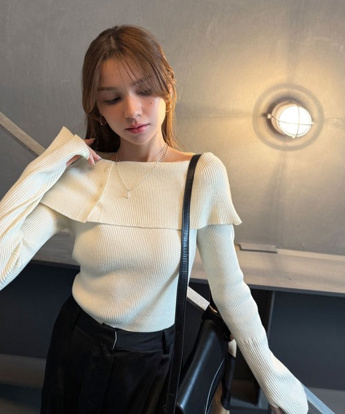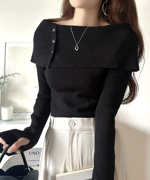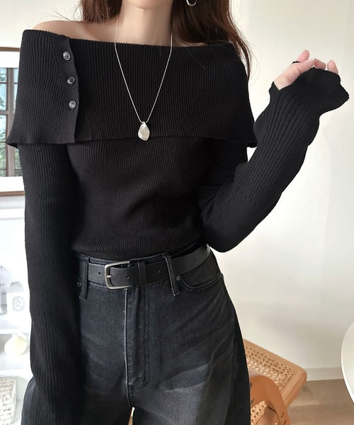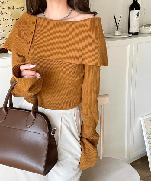 肩まわりの程よい肌見せが魅力のオフショルニット。