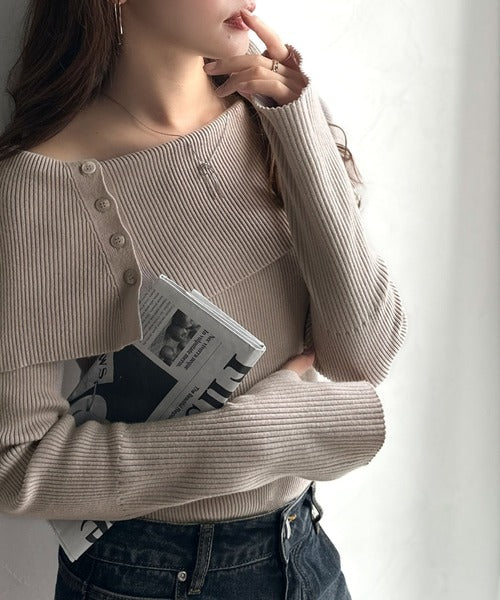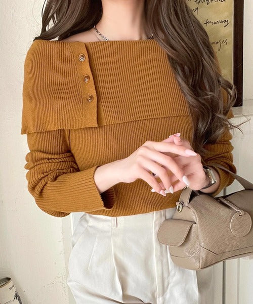 トレンド感のあるオフショルデザインに、リブニットの縦ラインでスタイルアップが叶う大人のためのニットトップス。