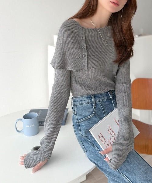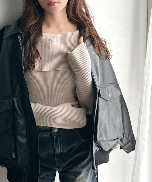 上品&繊細に華奢見え♪サムホール付きオフショルリブ編みニット(長袖) ce1260446