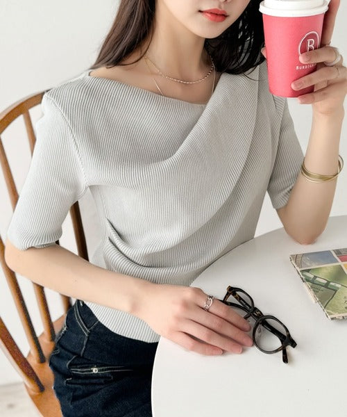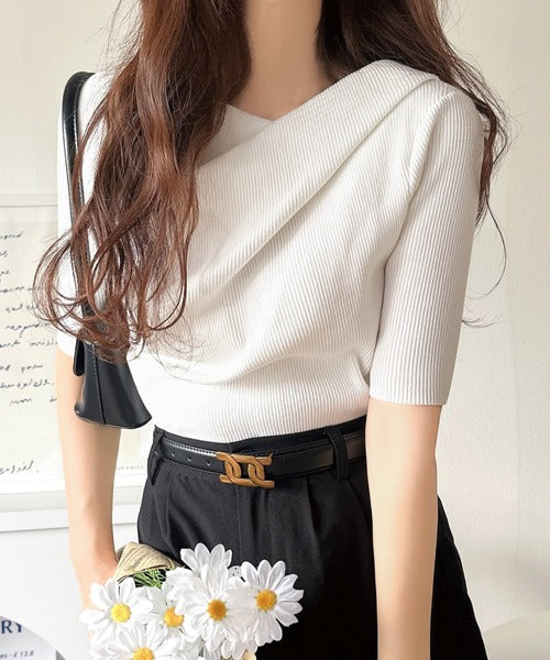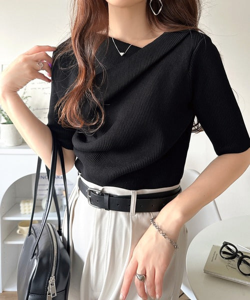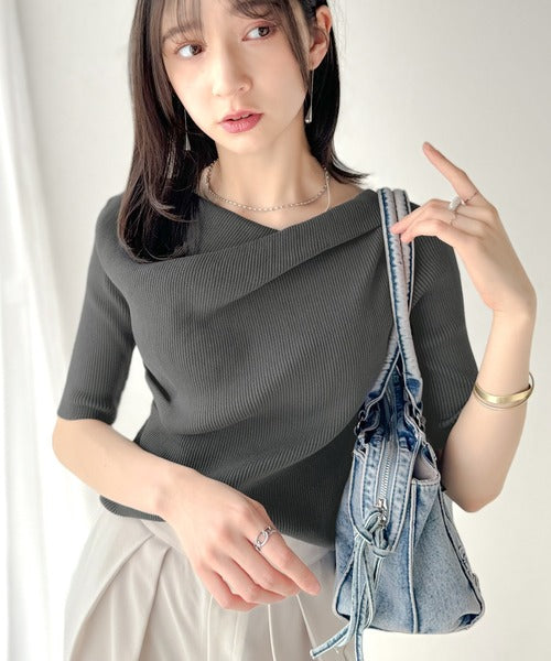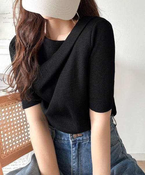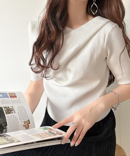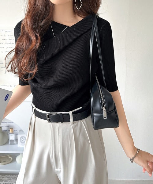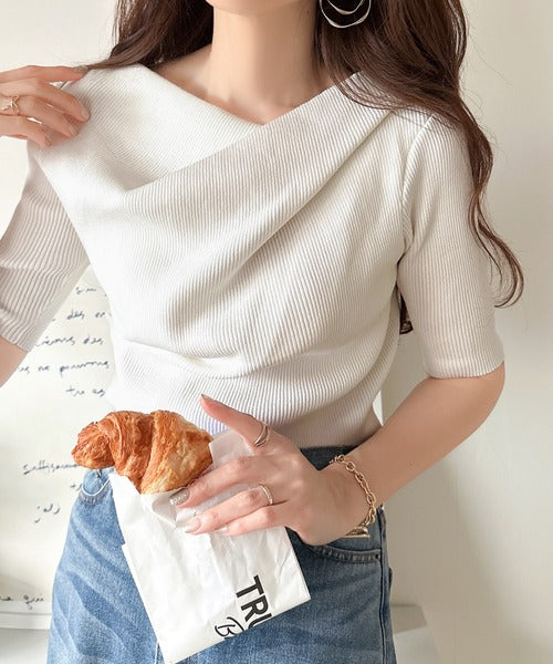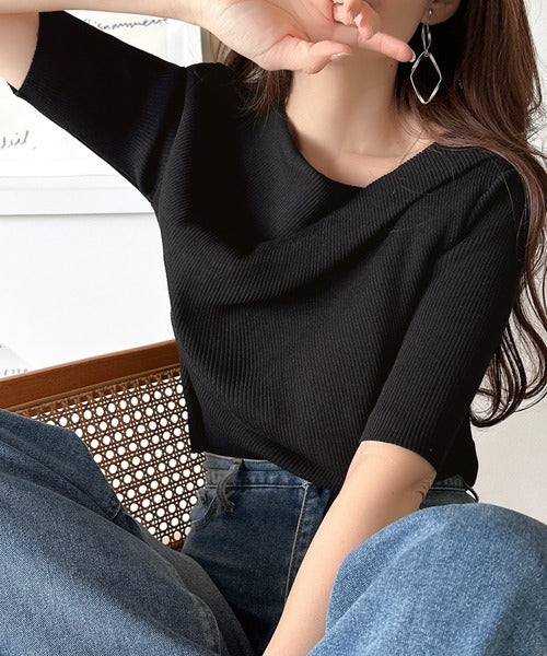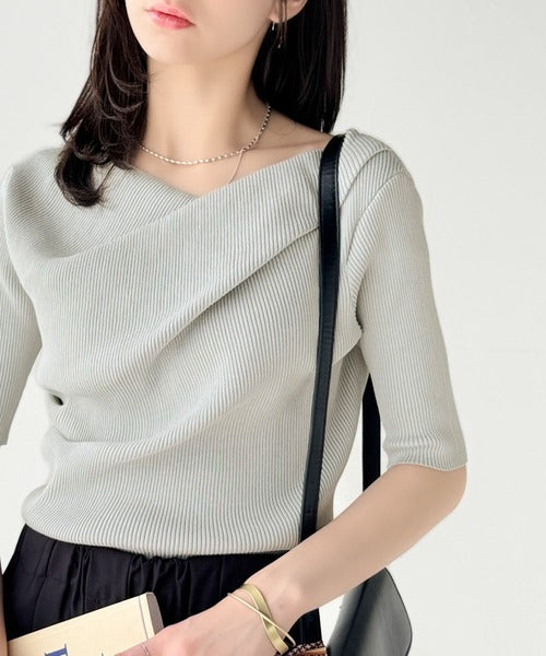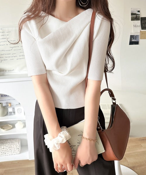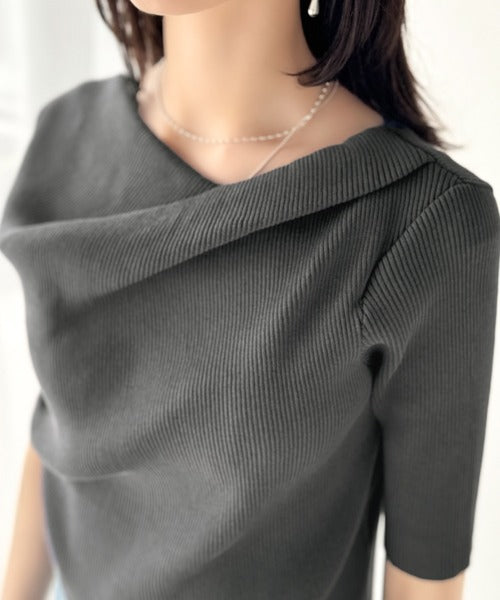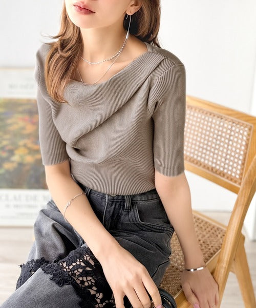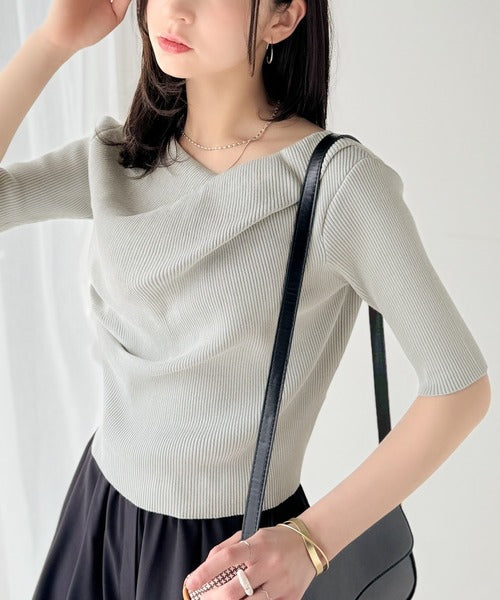 大人気ドレープデザインニットの五分袖バージョン!