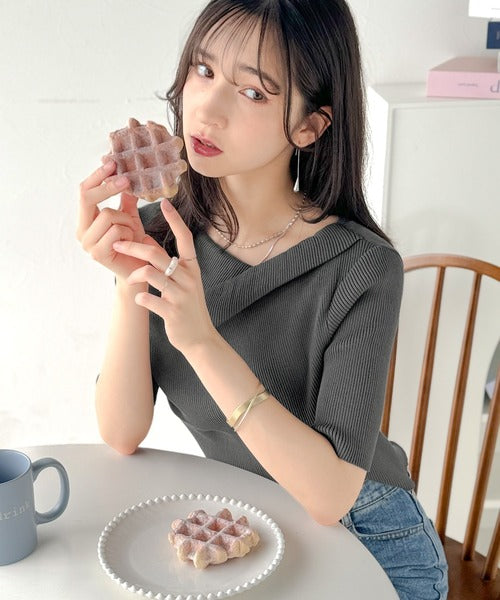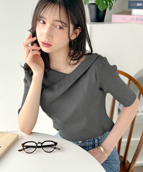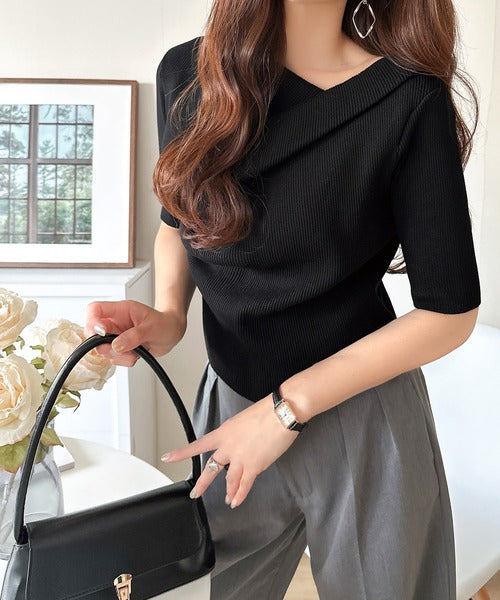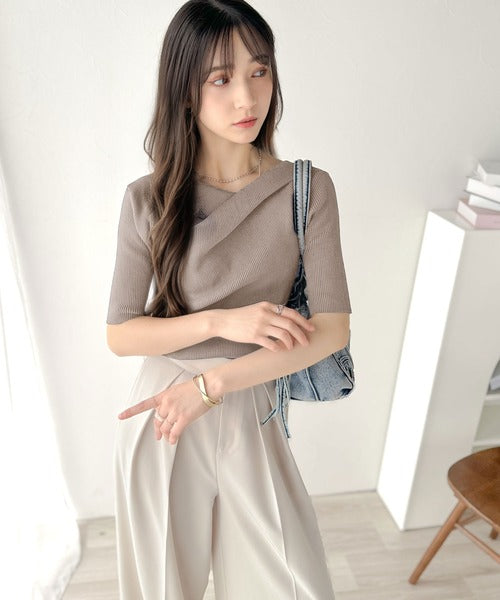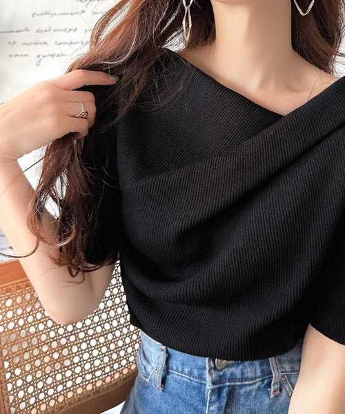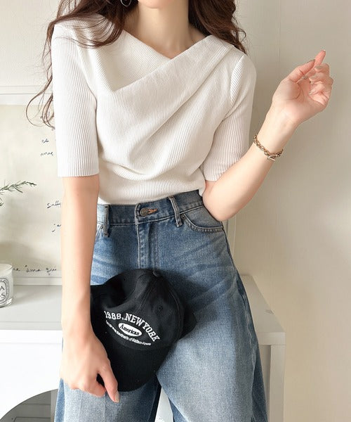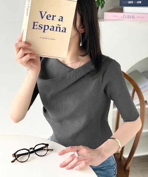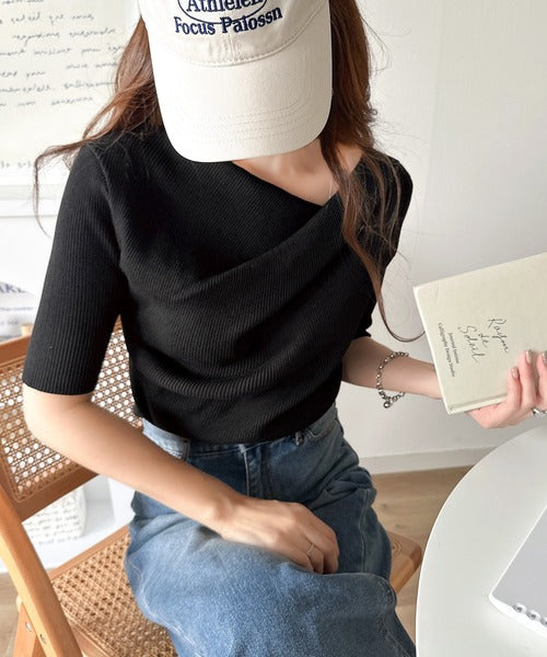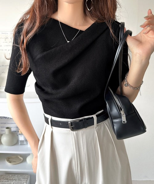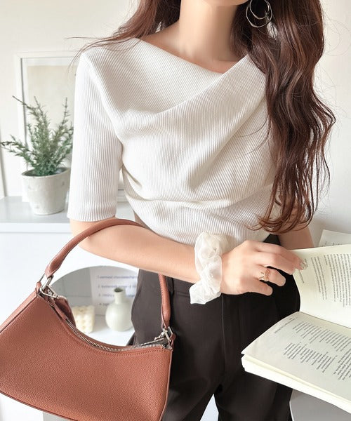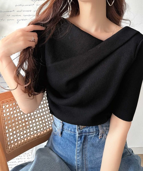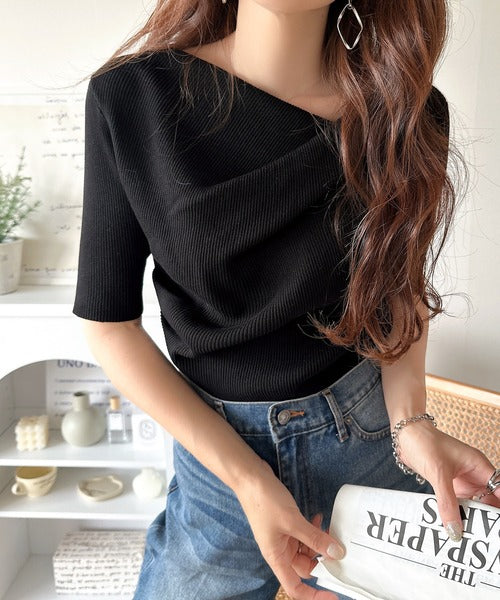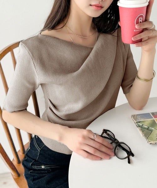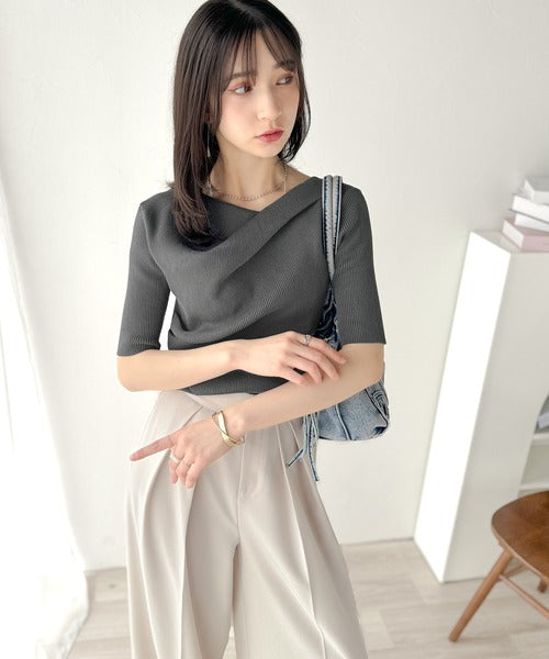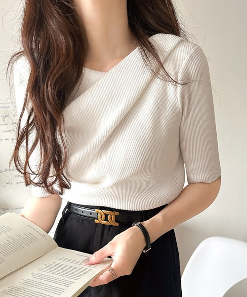 大人気ドレープデザインニットの五分袖バージョン!