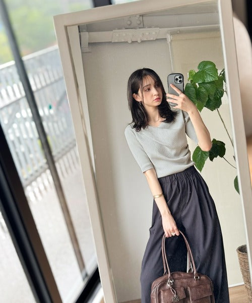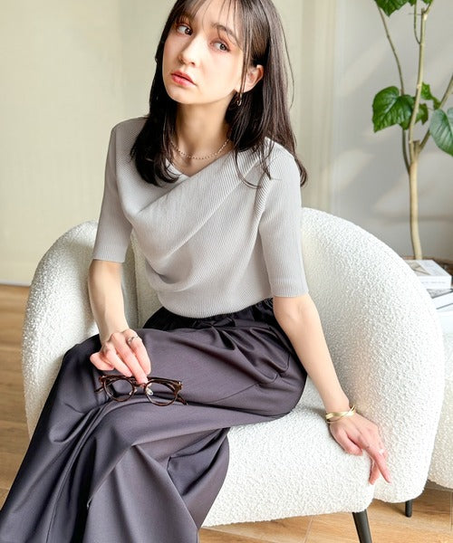 1枚で雰囲気美人。暑い日も、やっぱり上品でいたい。5分袖ドレープニット(半袖) ce1260474