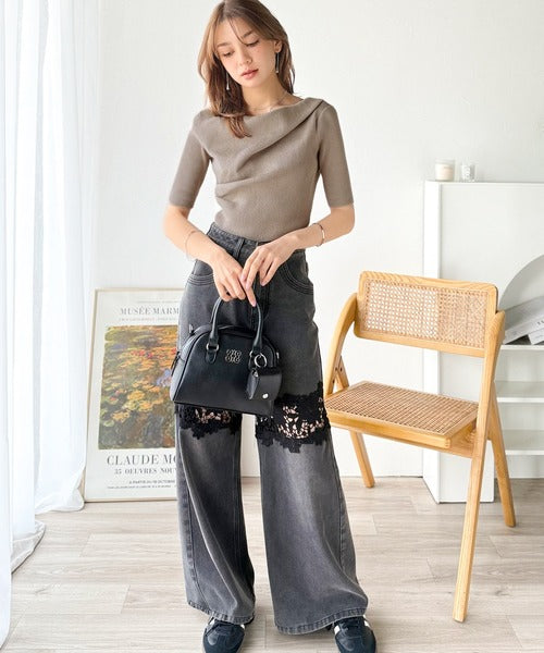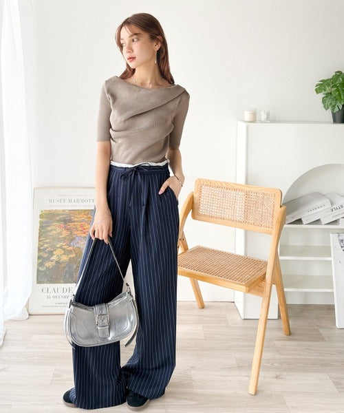 上品ドレープで魅せる、フェミニンな抜け感ニット!
