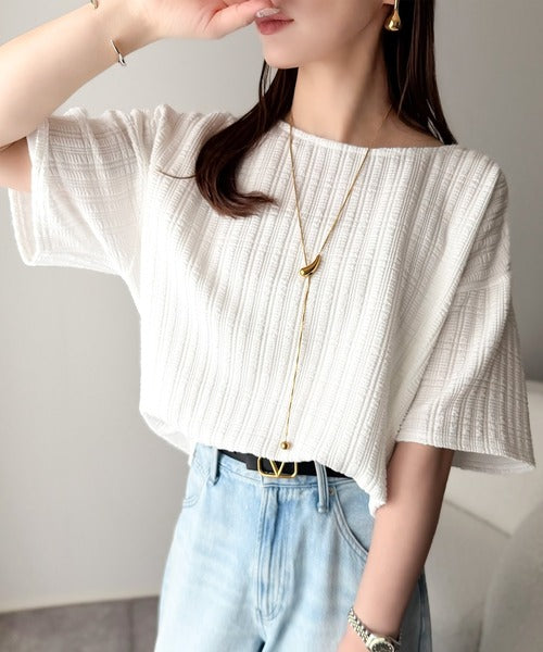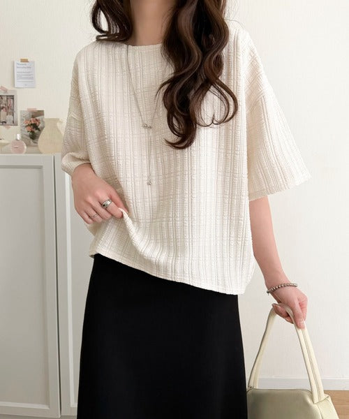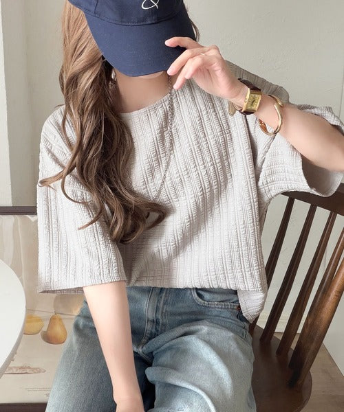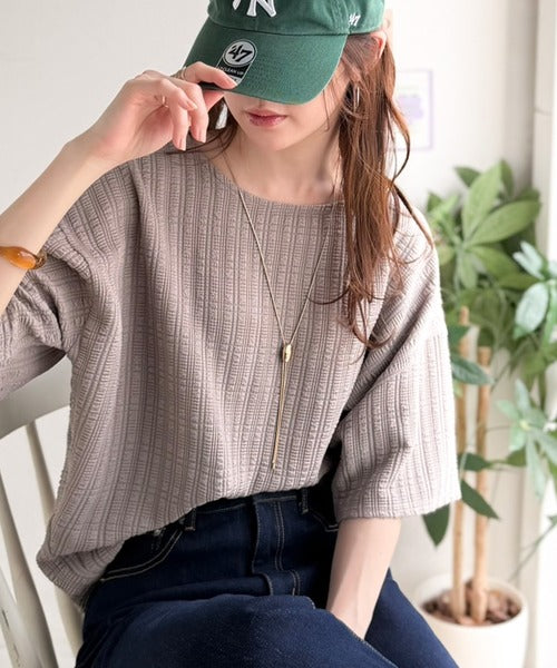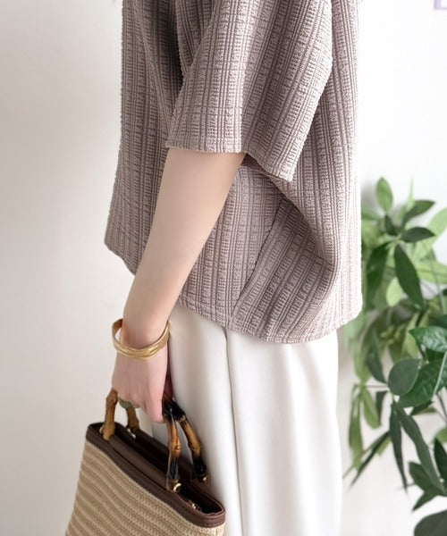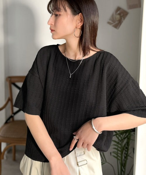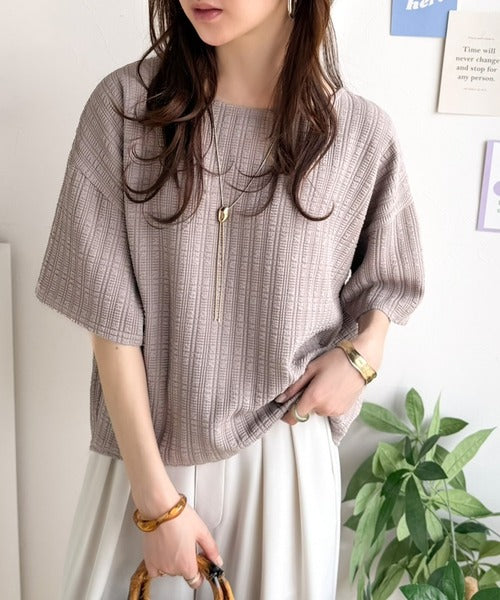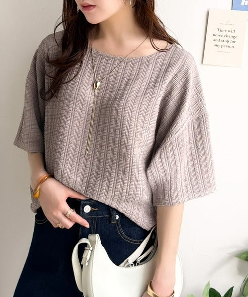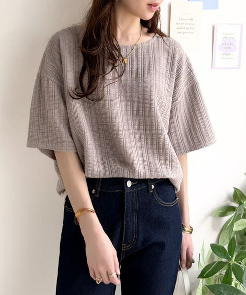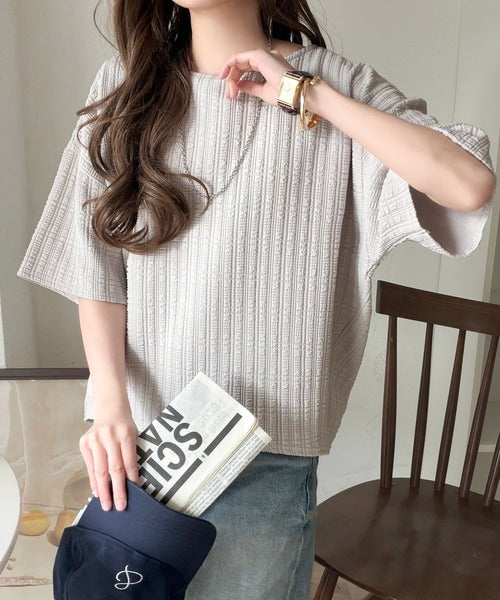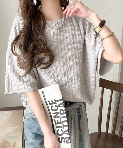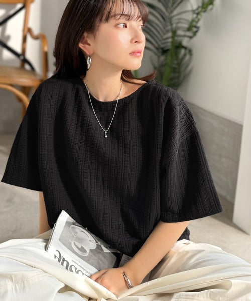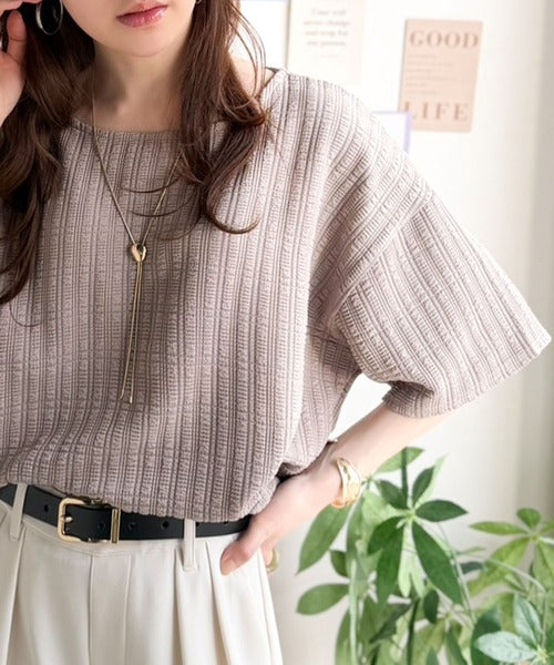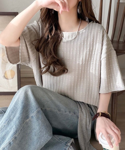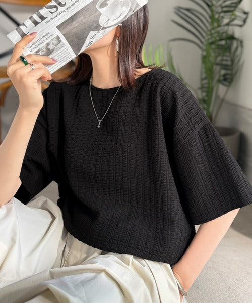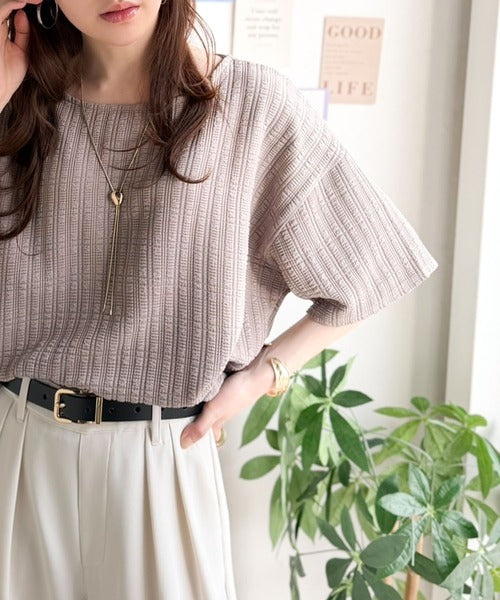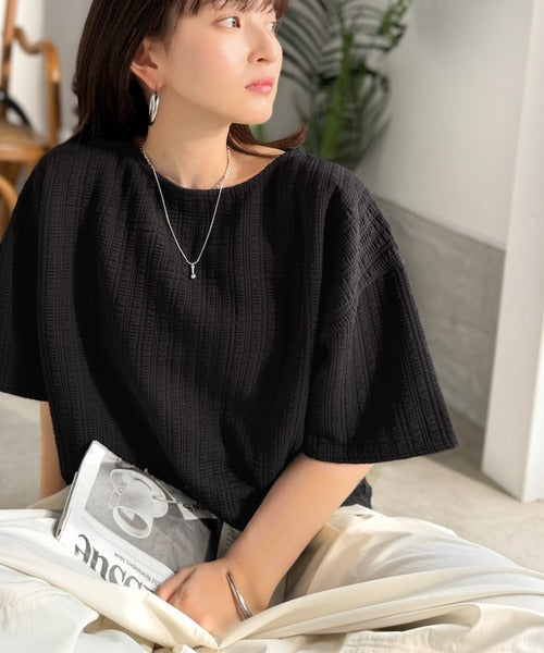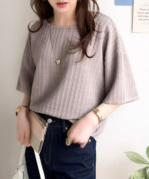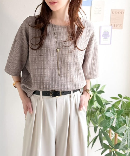 ラフなのに品よく見える。軽やかぽこぽこフクレジャガードトップス(半袖) ce1260557