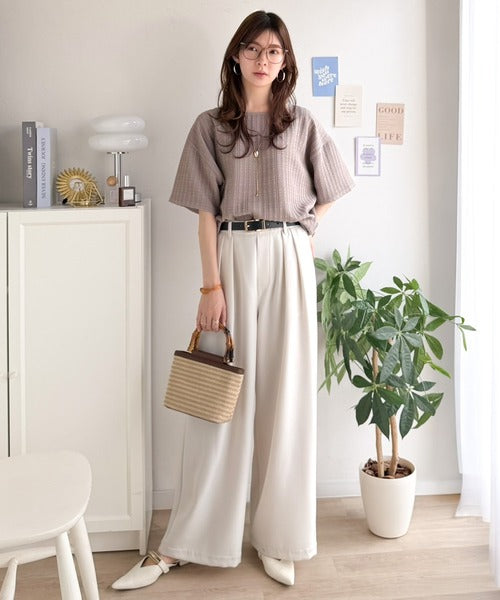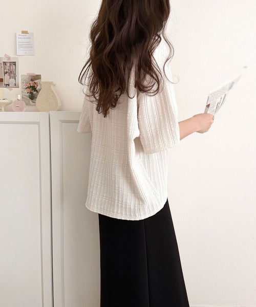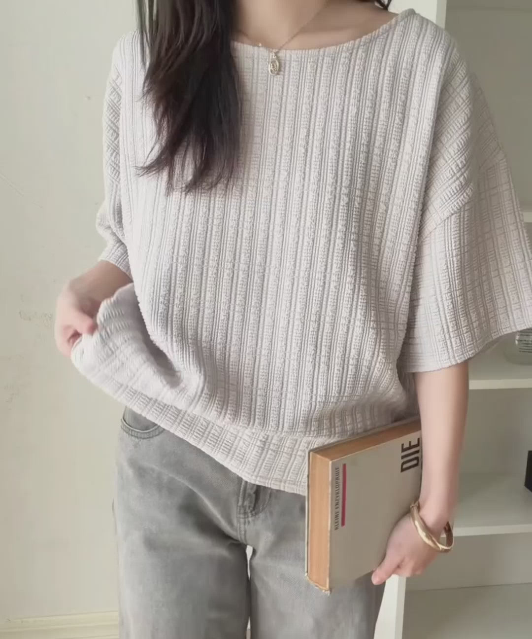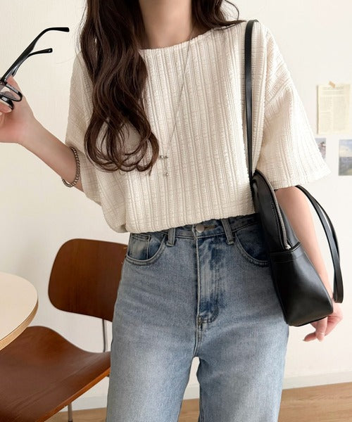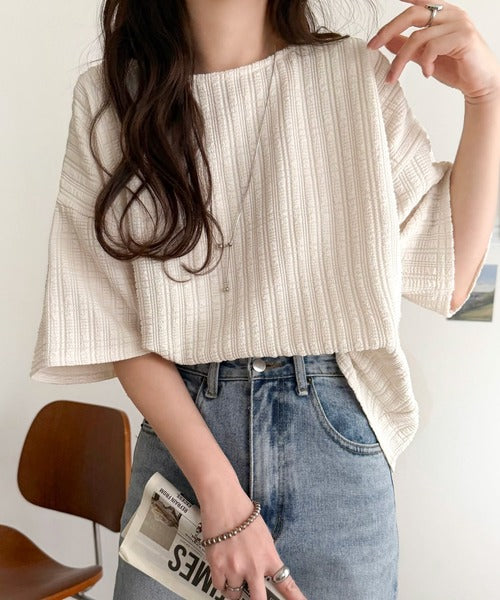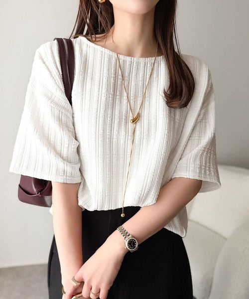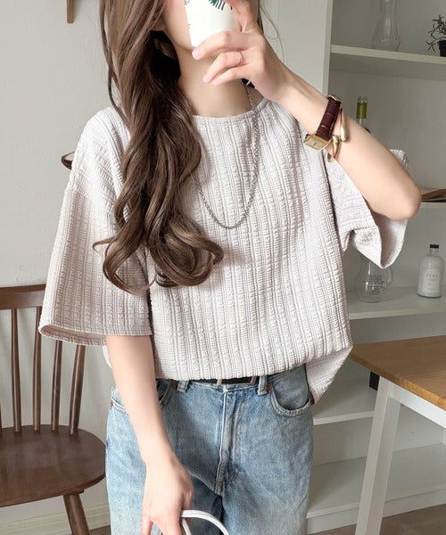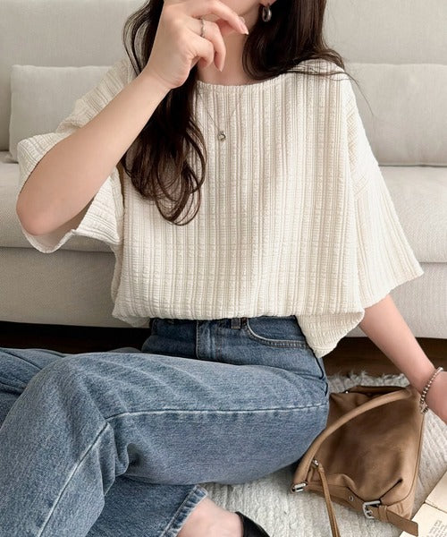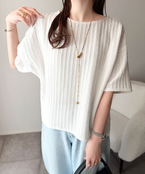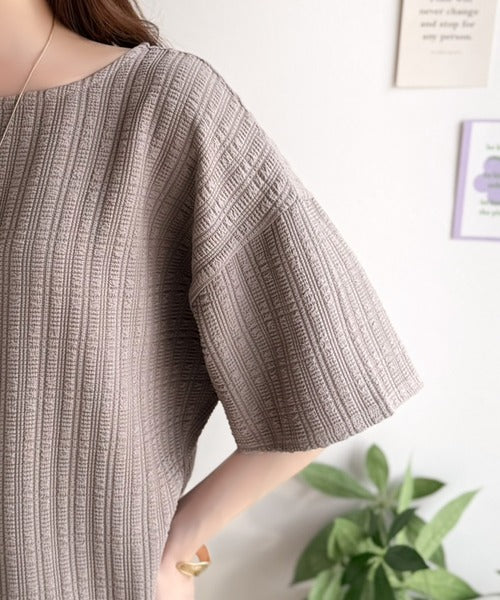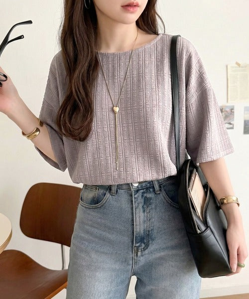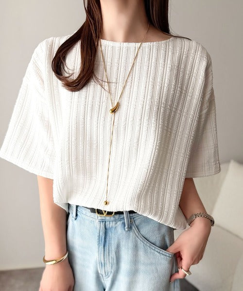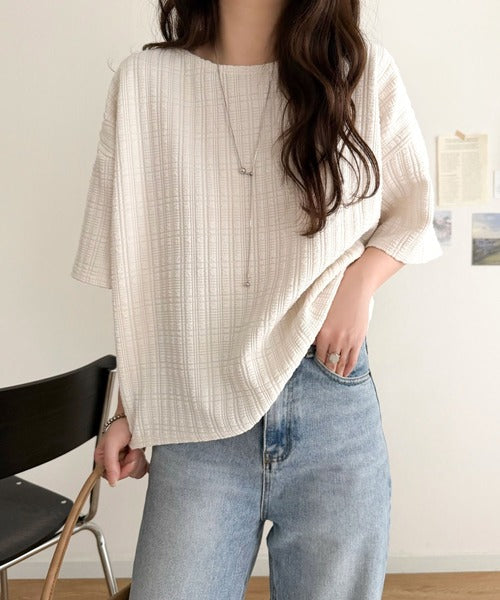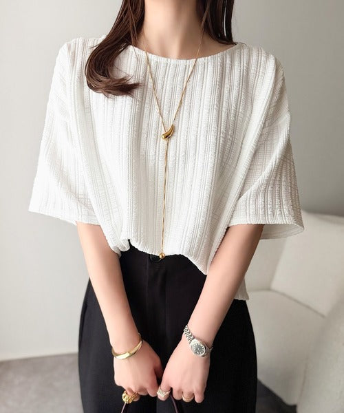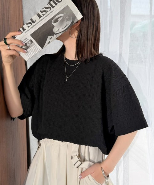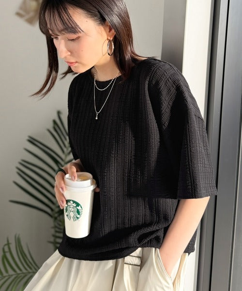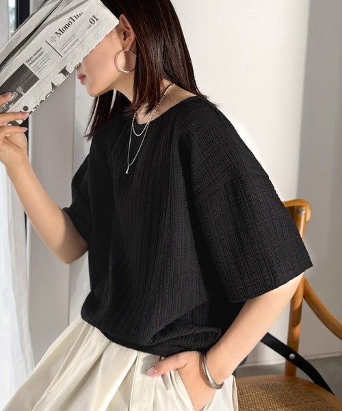 ラフなのに品よく見える。軽やかぽこぽこフクレジャガードトップス(半袖) ce1260557