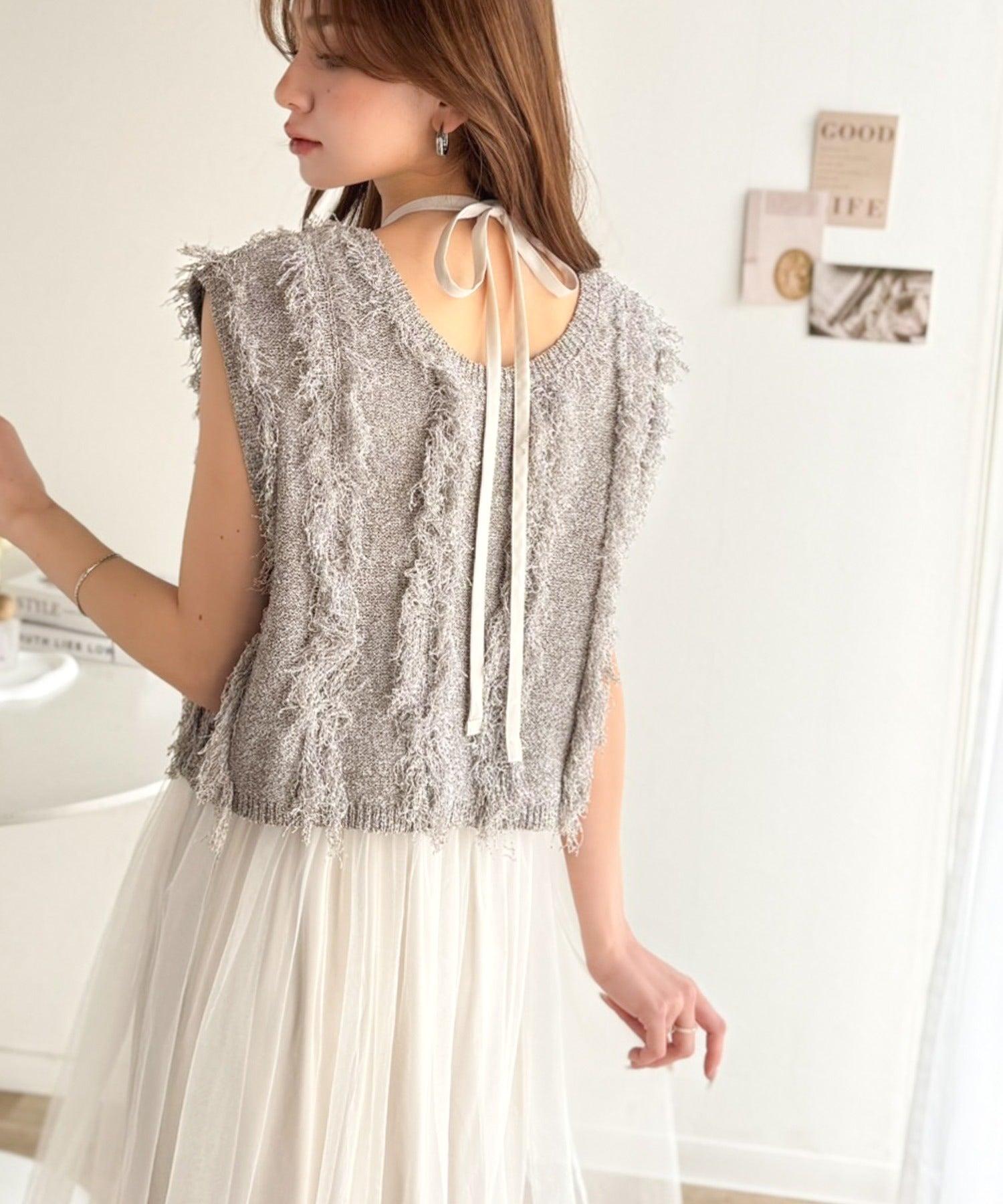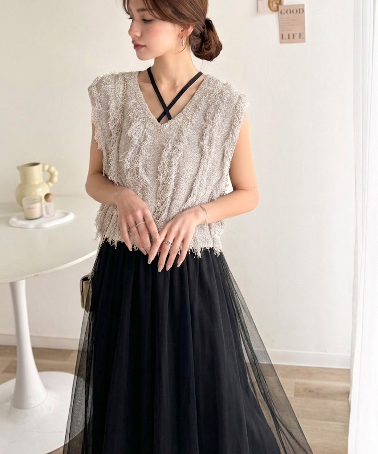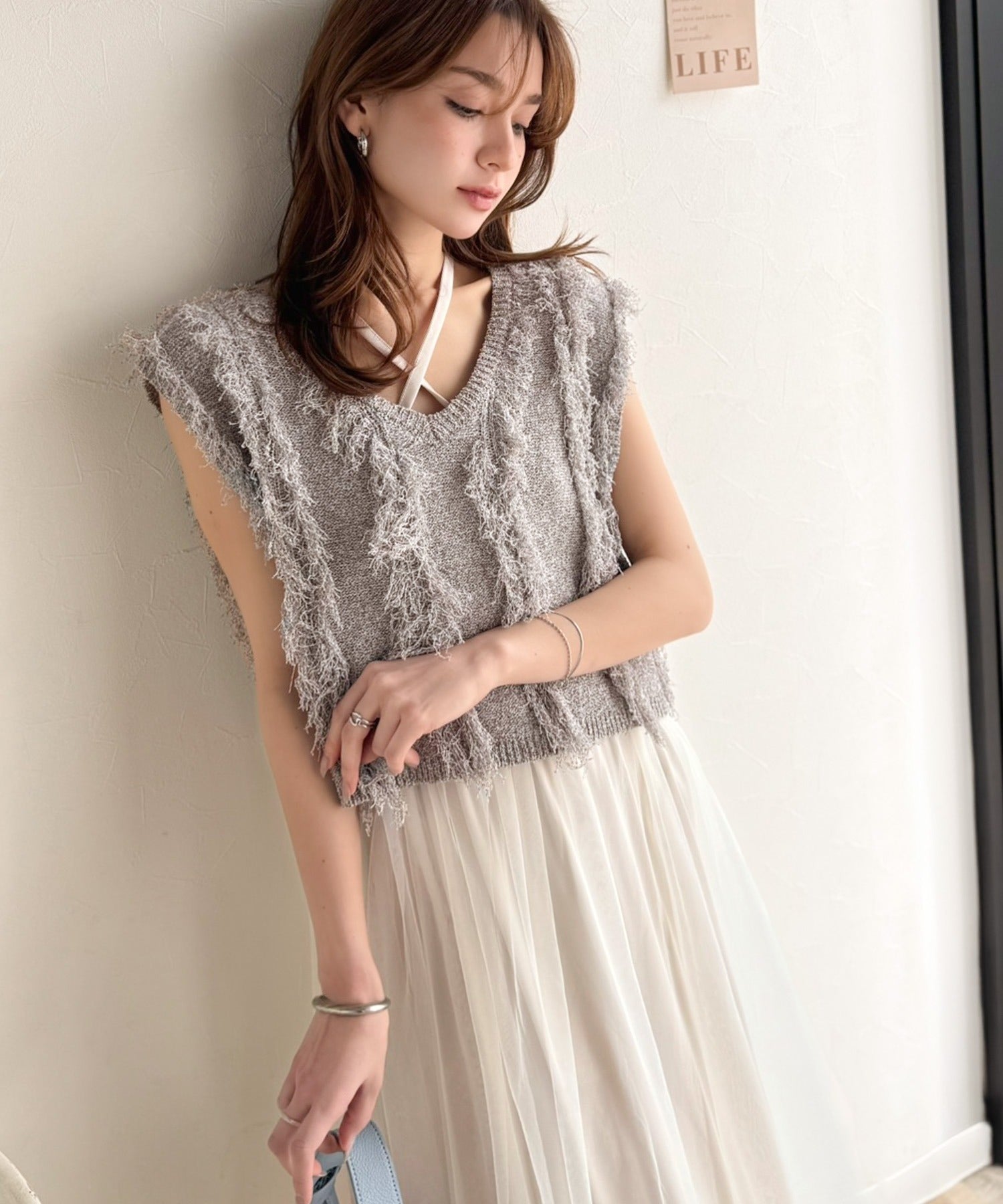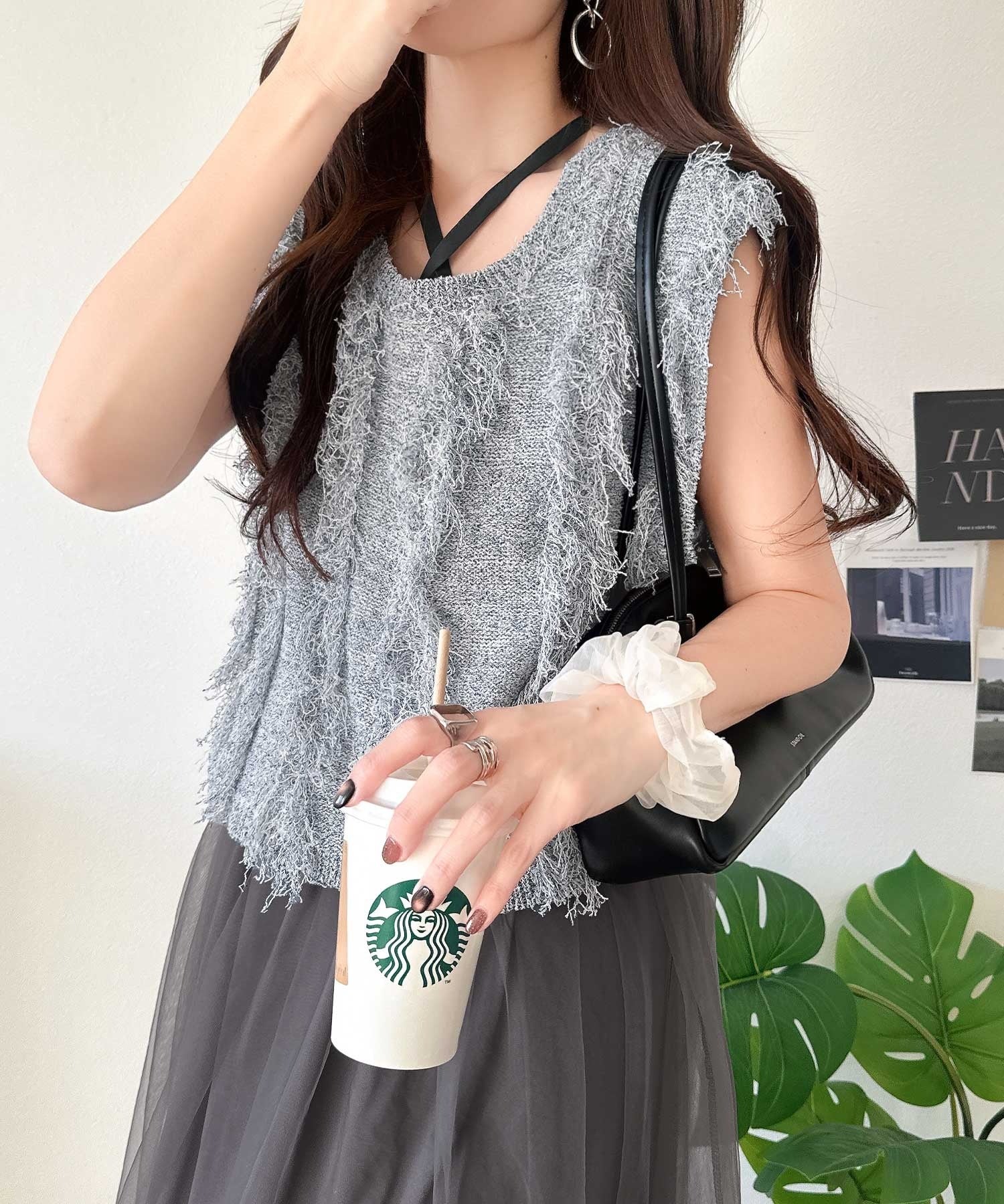 フリンジニット×フレアチュールの華やかセットアイテム。