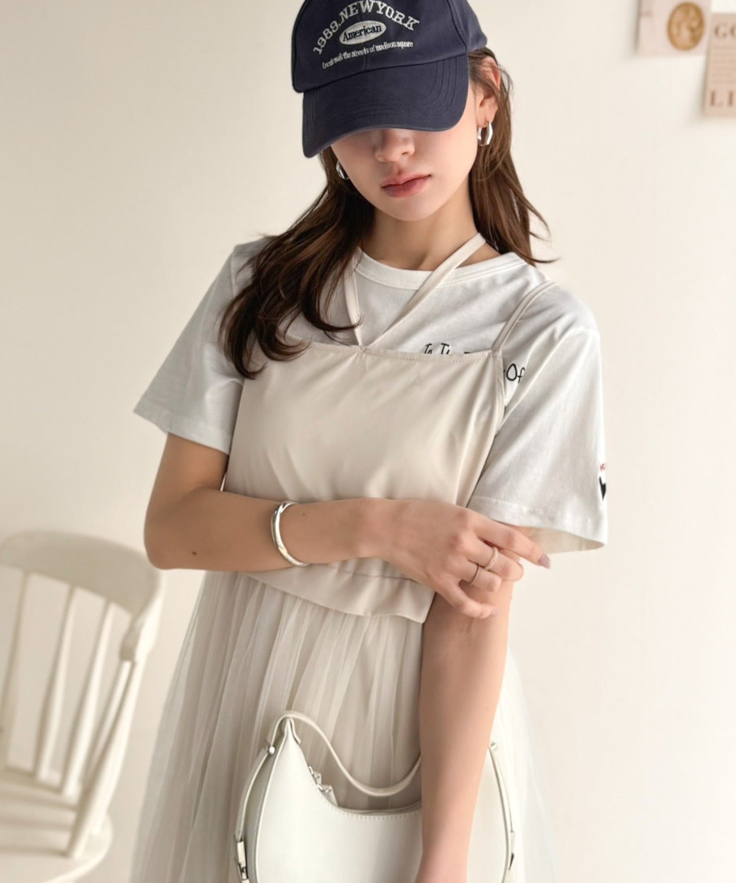 カジュアルにもフェミニンにも合わせやすい、華やかなレイヤードアイテム。