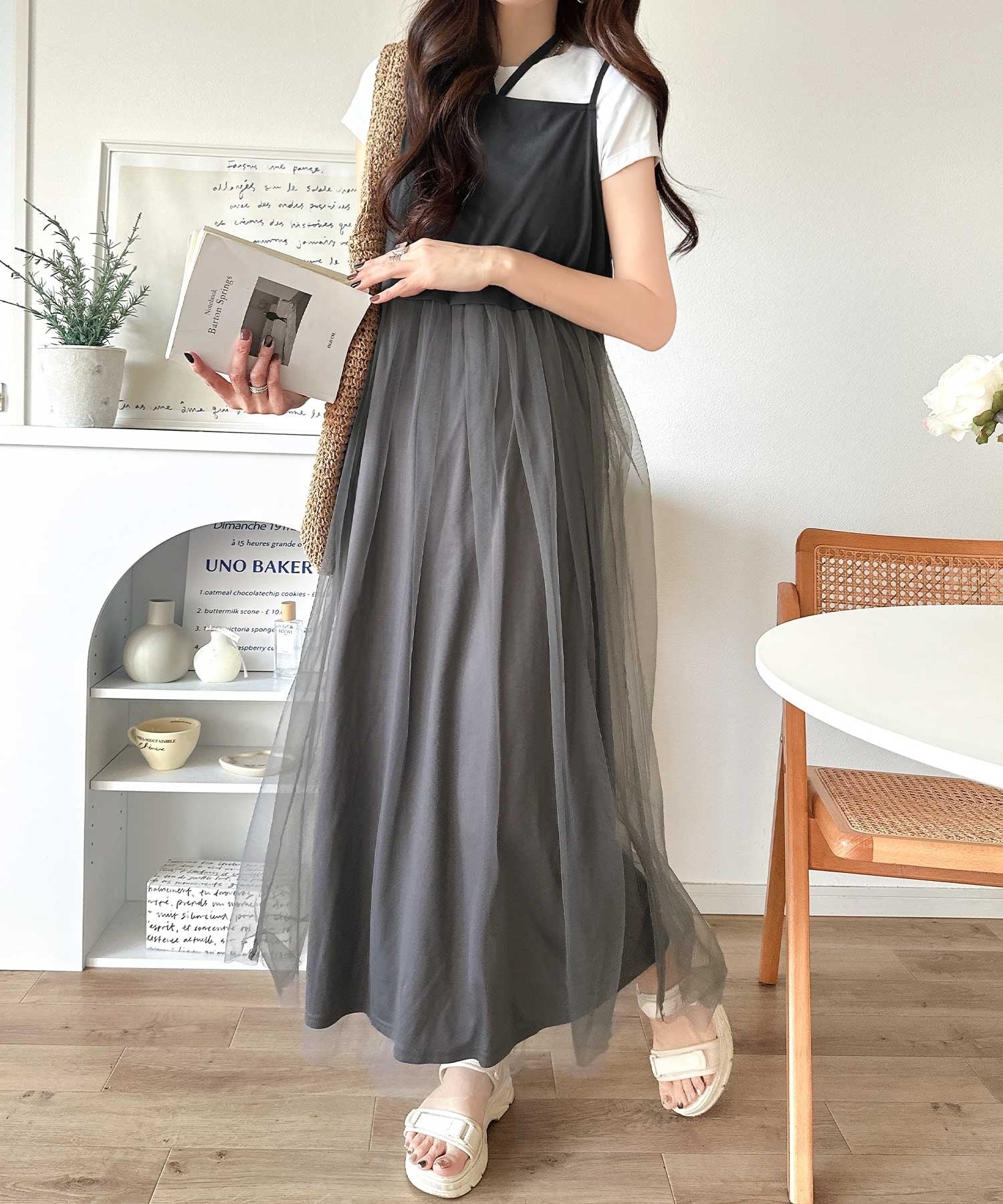 キャミワンピースは中にTシャツを合わせて休日カジュアルコーデにも♡