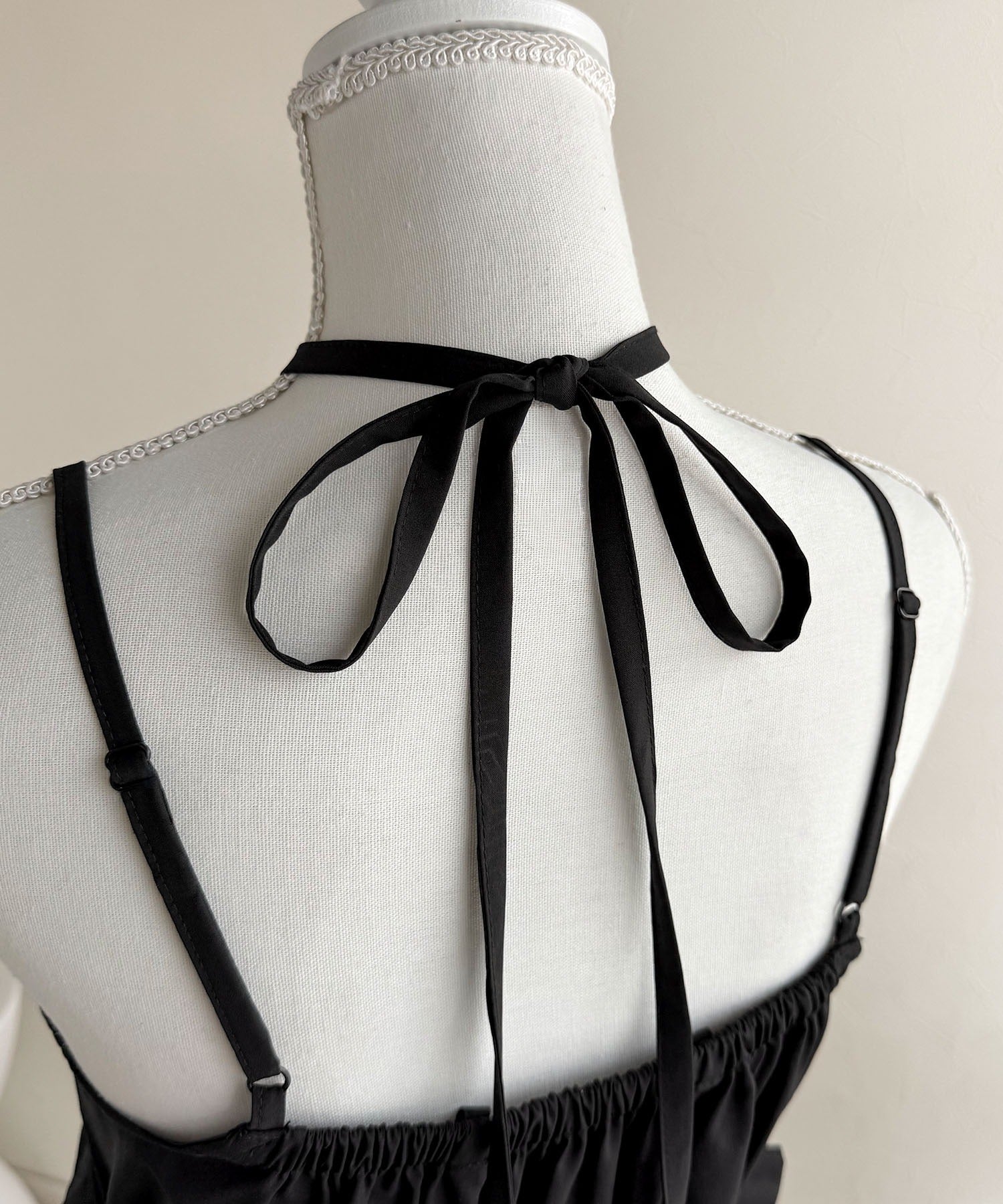 ワンピース:適度に張りのあるタフタ生地と柔らかくて落ち感のあるチュール生地のコンビ素材。