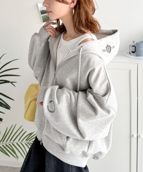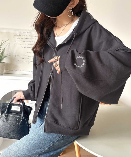 フードと袖のさりげない刺繍が効いた、着回し力抜群の一枚◎