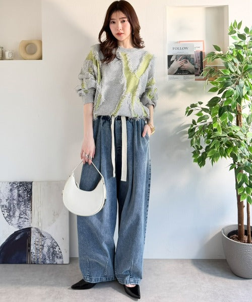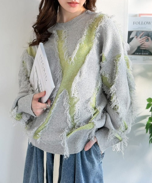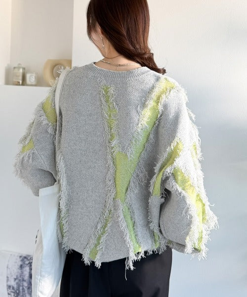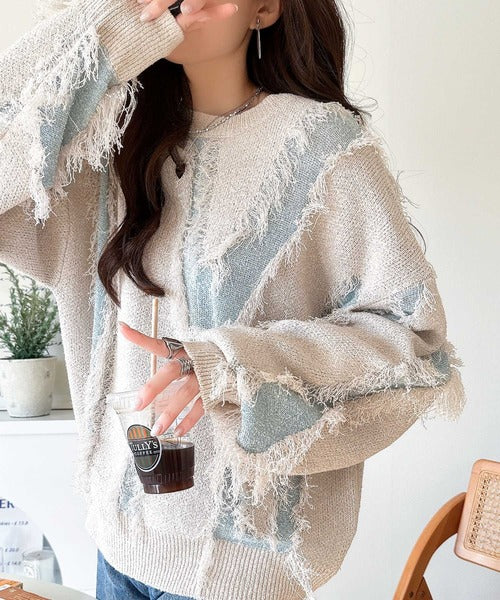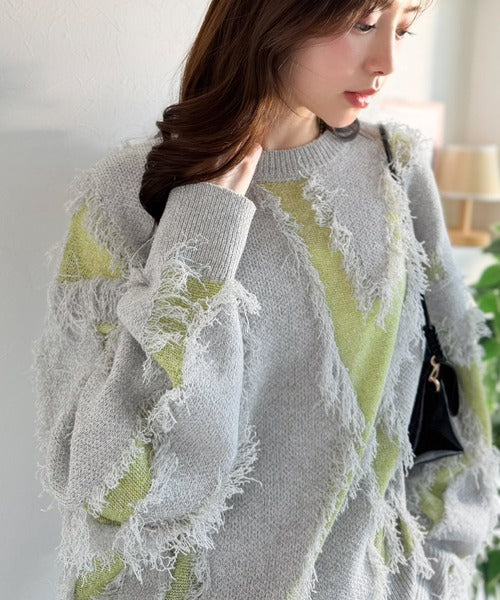 コーデの主役級!華やぐフリンジ配色ジャガードオーバーサイズニット(長袖) ce1260613