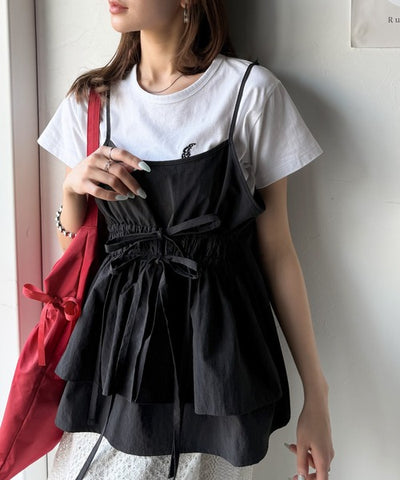 リボンキャミソールと刺繍Tシャツのセットアイテム。