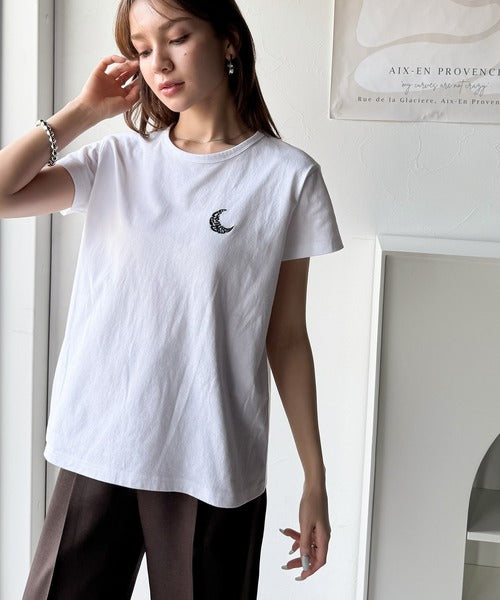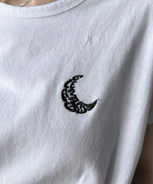 ・Tシャツには胸元ムーン刺繍でワンポイント