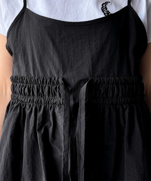 華奢な肩紐とボリュームのあるギャザーが目を惹く