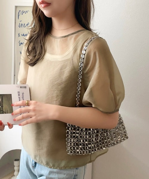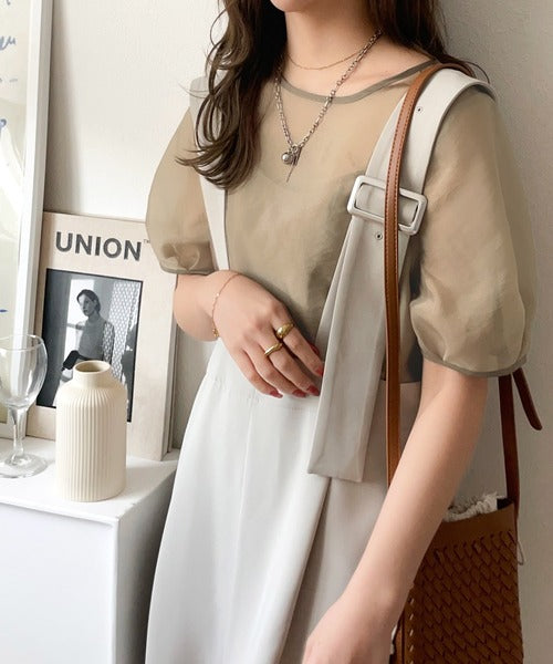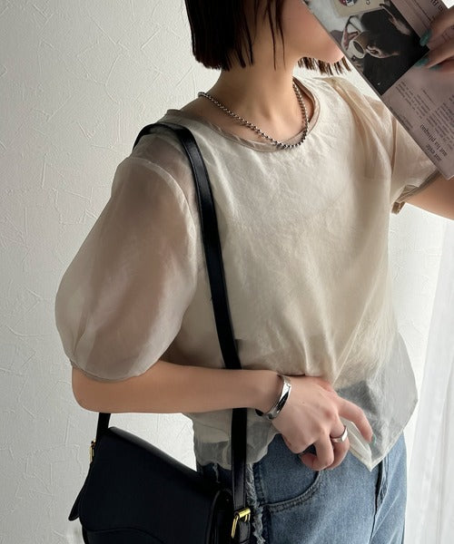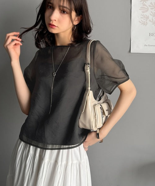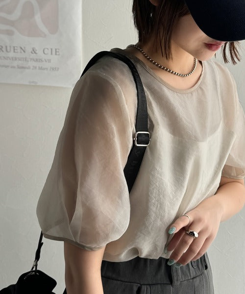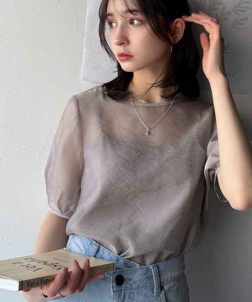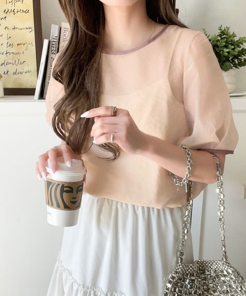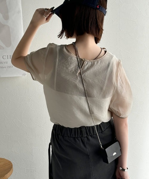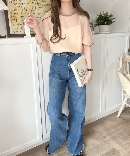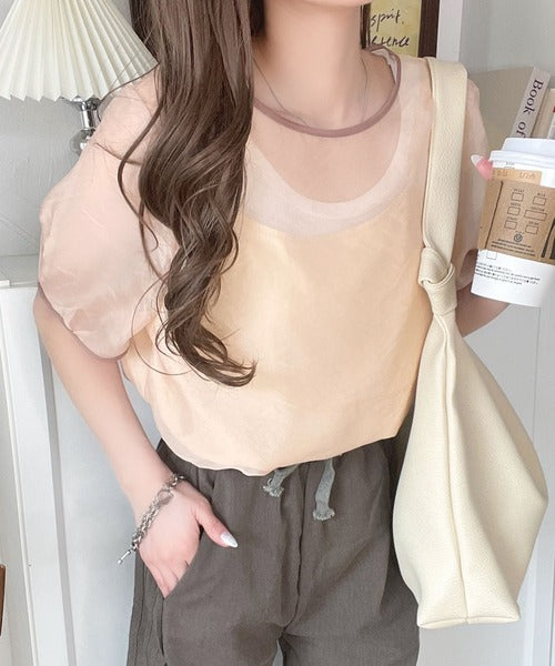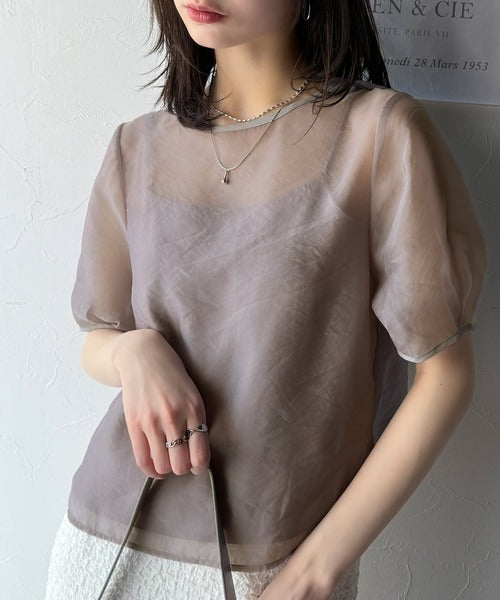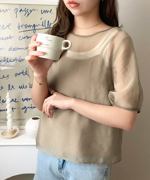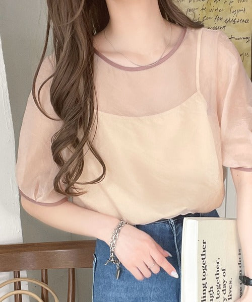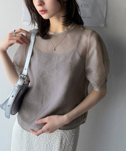 ・涼やかシアー素材ブラウスにキャミソールがドッキング