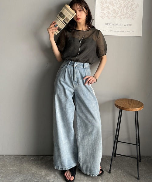 このキャミドッキングシアーブラウスは、デニムやリネンパンツと合わせることで、リラックスしたカジュアルスタイルを楽しめます♪