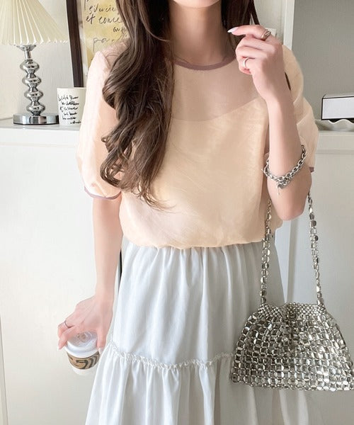 ※オーガンジートップスについて、蒸気を当てるとシワが出やすく繊細なお素材となっておりため