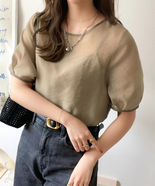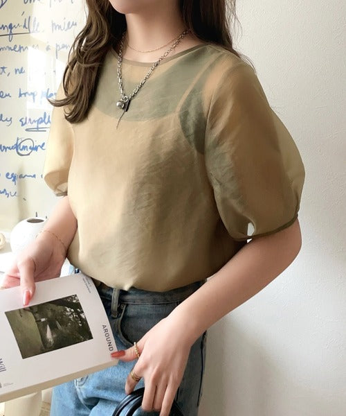 これ一枚で洗練スタイルの完成。キャミドッキングシアーブラウス(半袖) ce1265005
