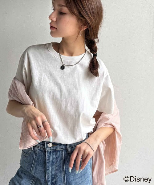 カジュアルから甘めまで、着回し自在の万能ディズニーキャラクタープリントTシャツ。