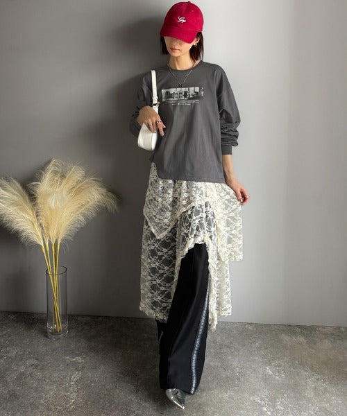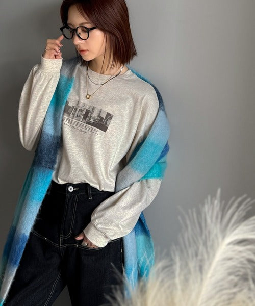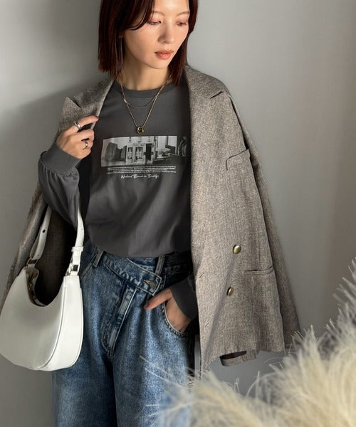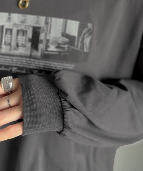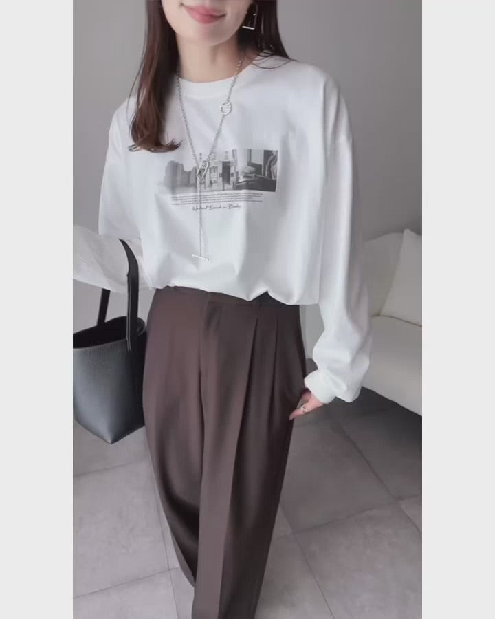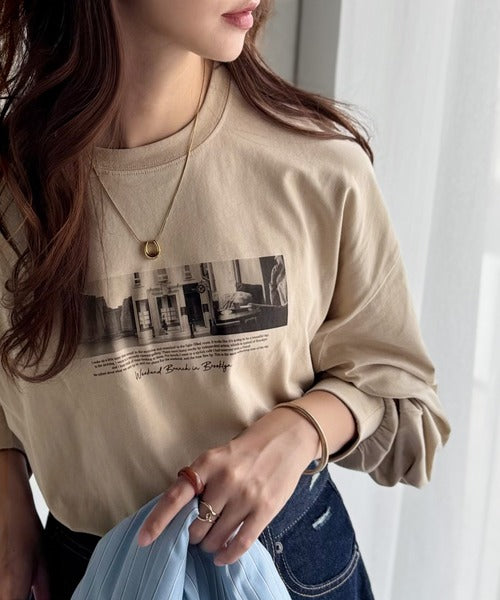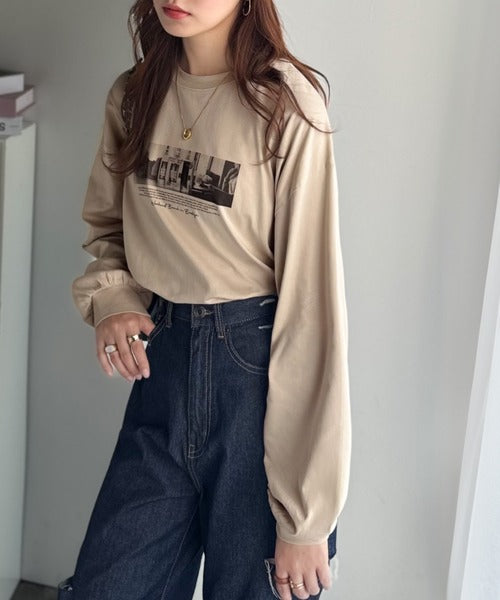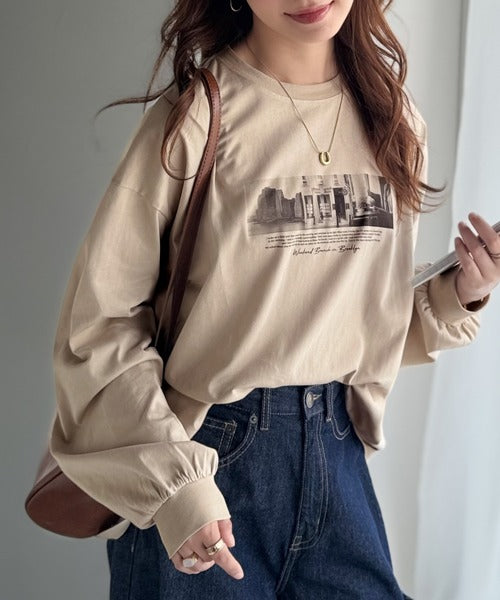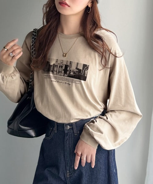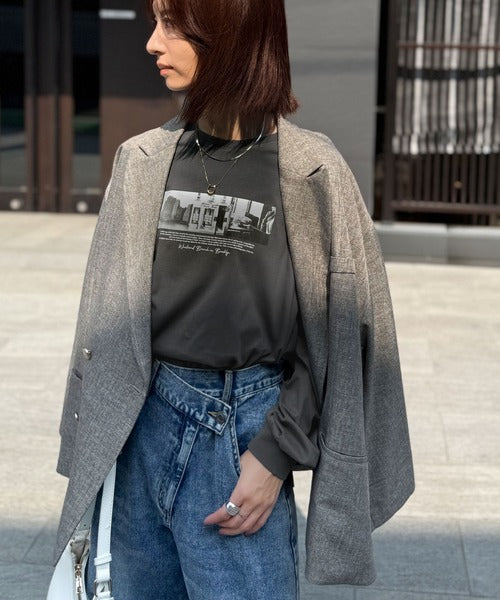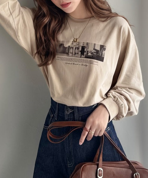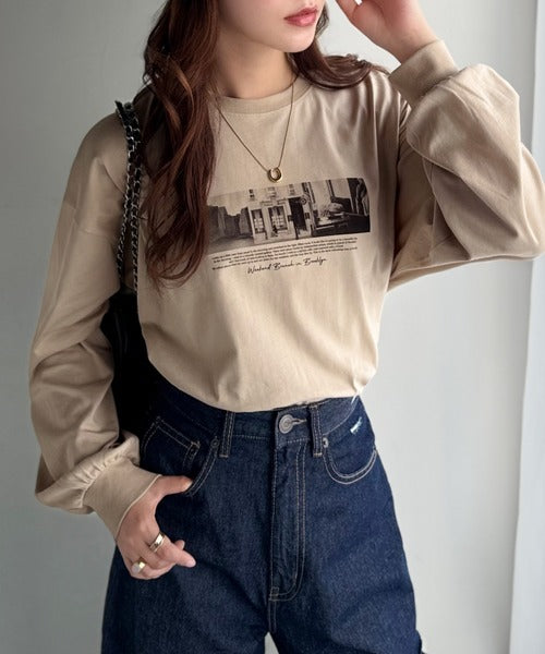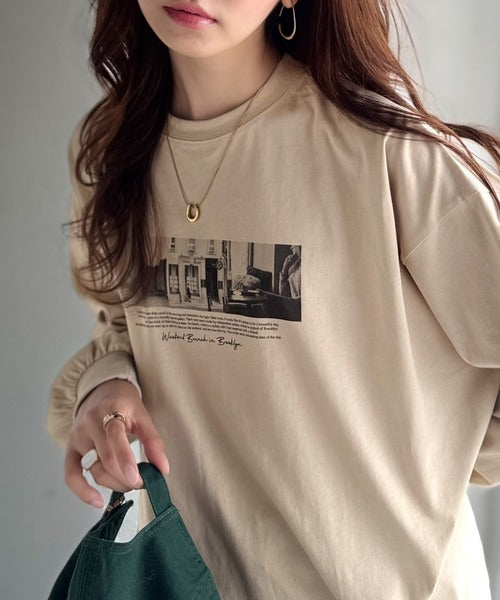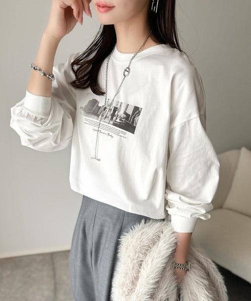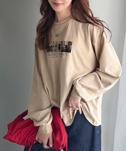 一枚でも、レイヤードでも。モードな雰囲気で魅せる綿100%モノクロフォトプリントロンT(長袖) ce1330041