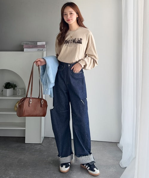 カーブデニムやスウェットパンツなど様々なシルエットのボトムスとの相性も抜群♪