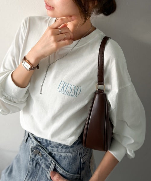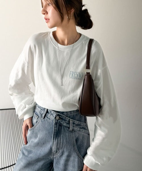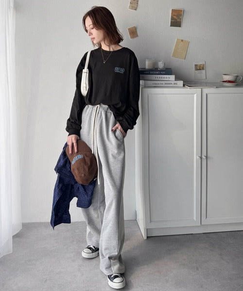 プリントの主張をおさえたデザインなのでどんなボトムスにも合わせやすく