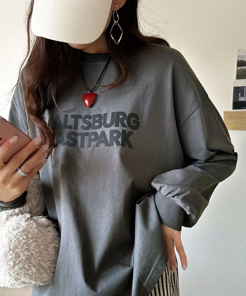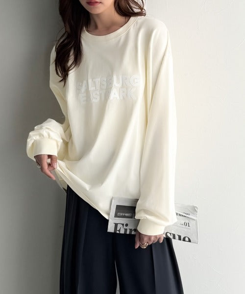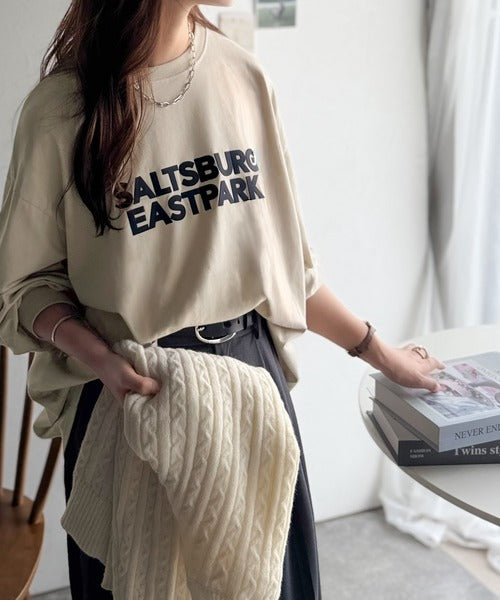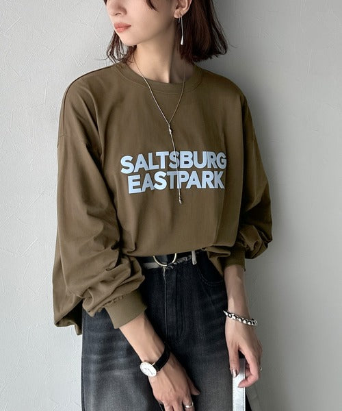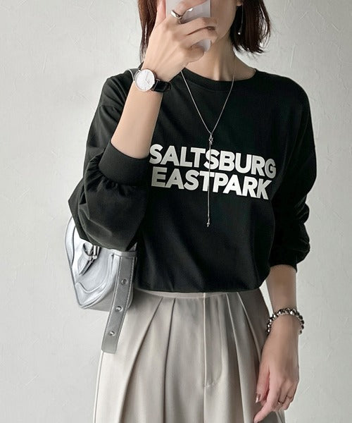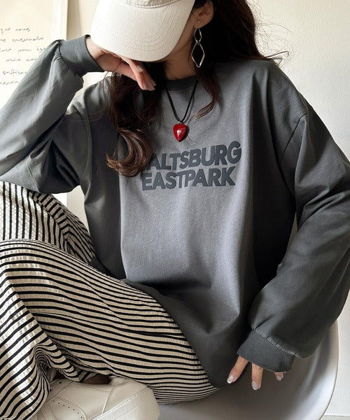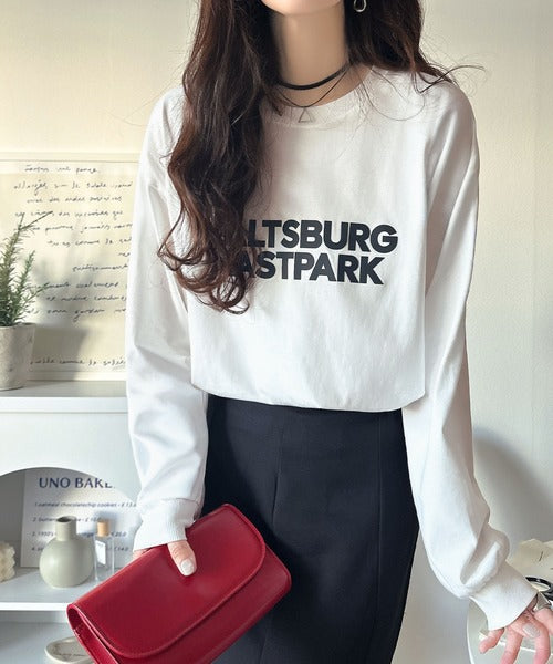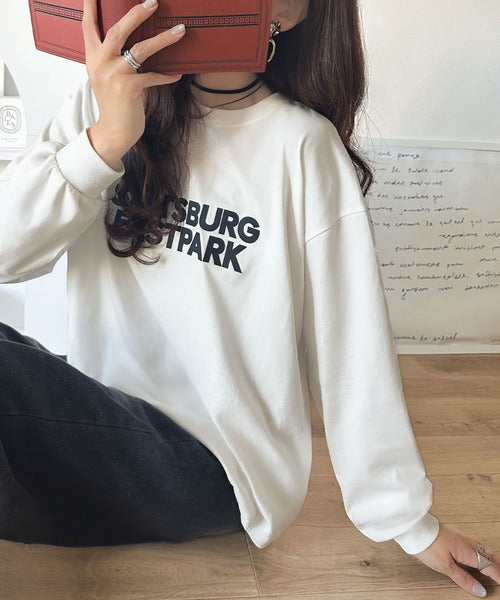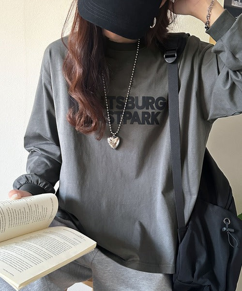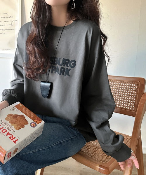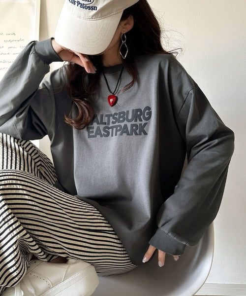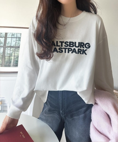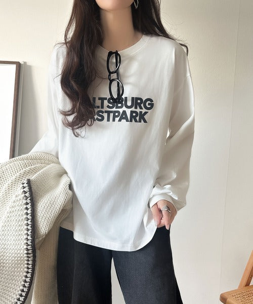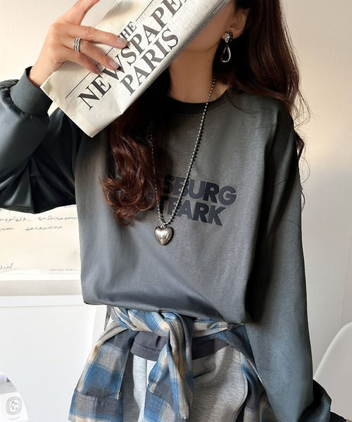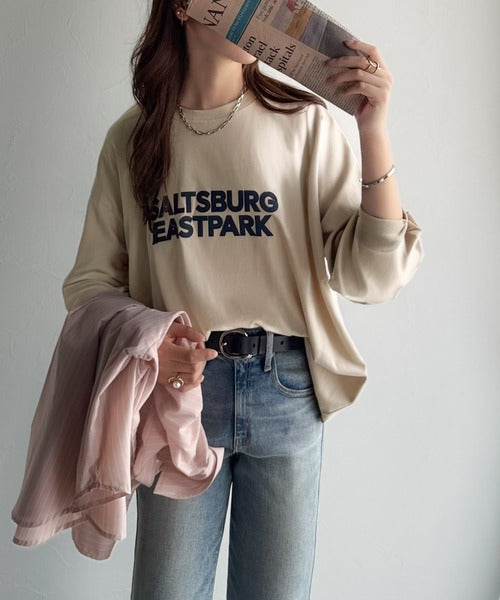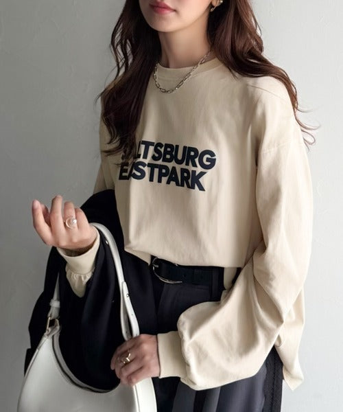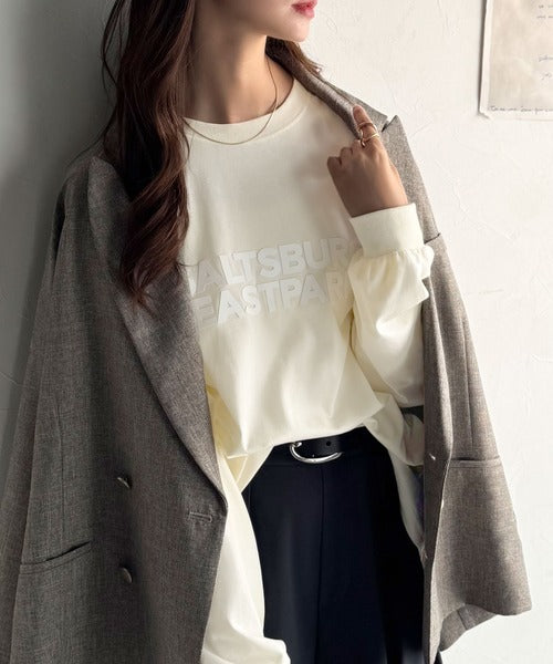 大人シンプル。ベーシックに映える厚盛プリント♪綿100%英字ロゴロンT (長袖) ce1330053